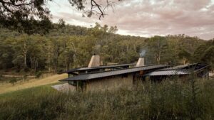 It is a vernacular that feels entirely at home among the gum trees, a modern interpretation of the traditional bush shelter that prioritizes durability and harmony with the landscape.