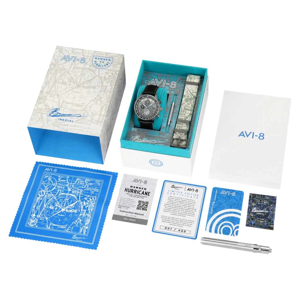 The AVI-8 Hawker Hurricane Inkdial Chronograph Limited Edition isn’t just a watch—it’s a piece of wearable art. It celebrates heritage and creativity in equal measure, making it a fitting tribute to Ben Li’s artistic journey and AVI-8’s ongoing commitment to crafting timepieces that tell a story. Limited to just 400 pieces, this watch is sure to be sought after by collectors and enthusiasts alike, and we at The Coolector reckon it’s the perfect way to add a touch of creative flair to your wrist. If you’re after a watch that combines a nod to history, aviation style, and artistic individuality, this might just be the one for you.