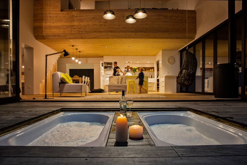 The real beauty of the property is the fact that it opens out onto a spectacular decking area which brings a real sense of the great outdoors inside and affords mesmerising views of the surrounding countryside which, being New Zealand, is breathtaking to say the least. Ensuring that the property fits in seamlessly with its surroundings, LTD Architects chose a variety of rough hewn, natural materials which sit extremely well with the natural setting which the property enjoys.
