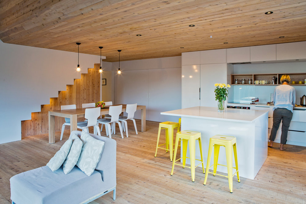 With simplicity being the fundamental aim of the Back Country House from LTD Architects, the space is is comprised of a single volume for living/cooking/ eating and this is joined by a lean-to annex which is where the lower floor service/sleeping areas are to be found. The spaces are very open-plan and shared as opposed to enclosed and separate and this is a feature that the architects were keen to get right as its a very family orientated dwelling.
