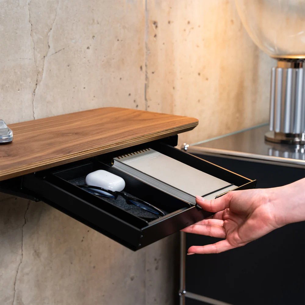 Another fantastic aspect of the Wall Cockpit is its versatility – it’s equally at home in an entrance area as it is in a living room. Imagine coming home and having your essentials effortlessly arranged, your keys and gadgets perfectly placed where you need them, and everything within easy reach. Or picture your favourite records neatly organized, giving your living room that extra touch of personality and style that makes it uniquely yours.