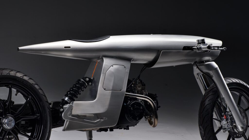 Underneath its sleek, hand-brushed exterior lies a 125cc engine that focuses on efficiency without compromising power. This engine delivers an astonishing 156 miles per gallon, making it not only a high-performance machine but also one of the most fuel-efficient bikes on the market. The original engines, dating back to 1958, are still running strong today, a testament to their durability and reliability. The EVE Odyssey is more than ready to take on the demands of modern-day riders while nodding to the robust engineering of the past.
