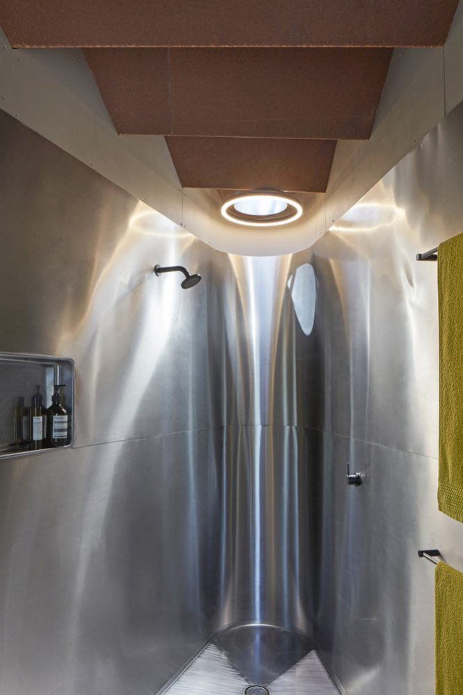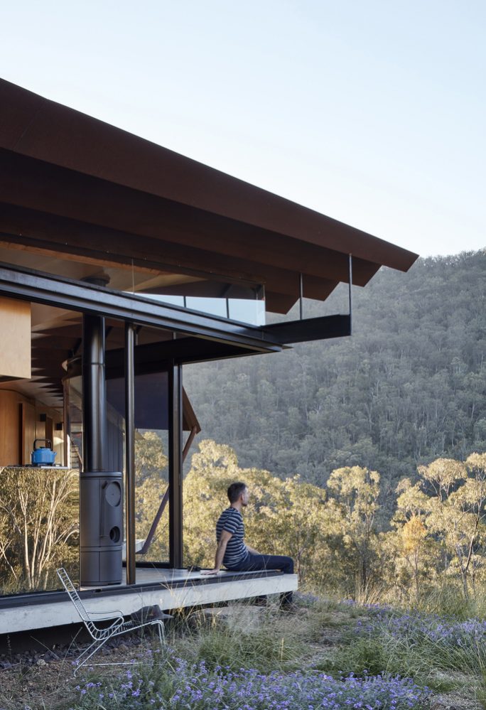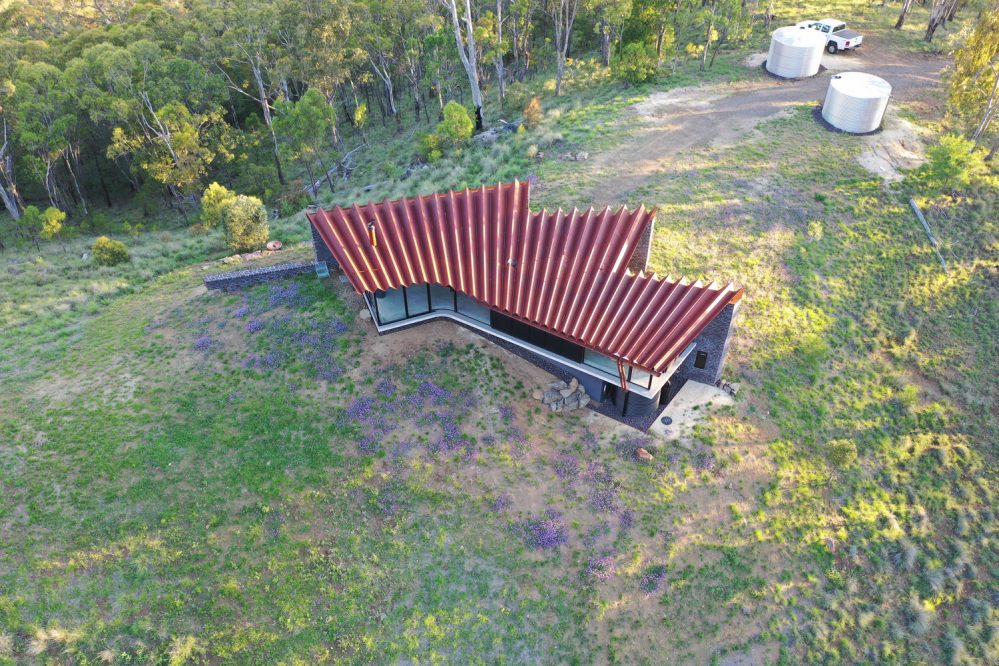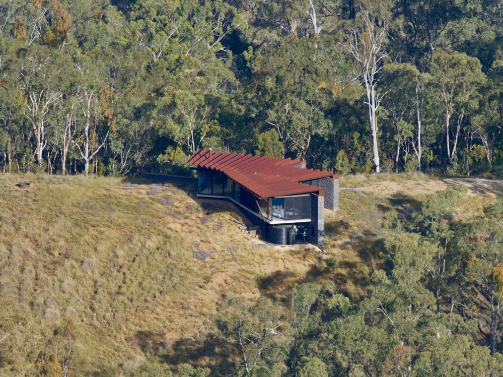 The Bellbird Retreat House from Steendijk Architects puts a lot of emphasis on sustainability and boasts plenty of design features that make this weekend retreat as environmentally friendly as possible. From rainwater and electricity harvesting to passive design measures which use the building’s mass and orientation to deliver year-round thermal comfort, it’s clear this is a house with an eco-conscience. With a site susceptible to devastating bushfires, the inspired fire-resistant roof design eliminated combustible timber rafters by utilising the structural capacity of steel pleats to create a single span structure with unsupported cantilevered eaves.