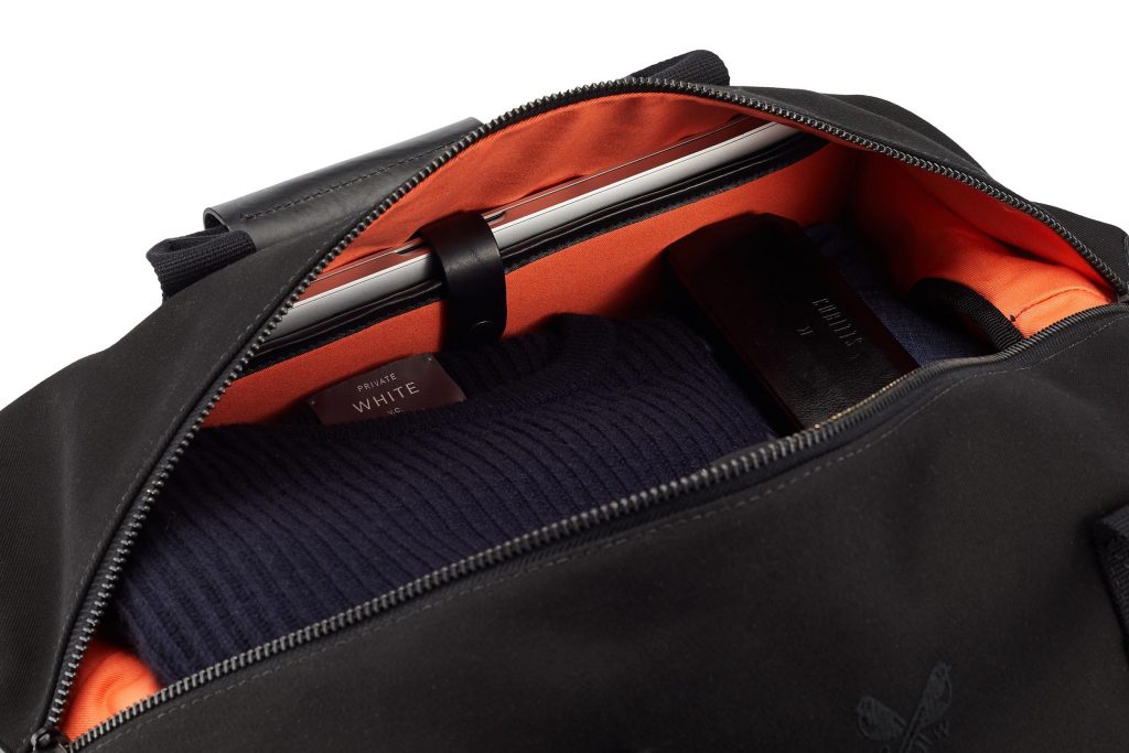 Everywhere you look in the craftsmanship of this Bennett Winch x Esquire Weekender Bag you’ll see that quality has prevailed from its 24oz British dyed and bonded waterproof cotton canvas to its Italian full grain leather trim, handles and base. The solid brass hardware with matte black finish and British dyed and woven military grade cotton webbing handles and shoulder strap really round things off.