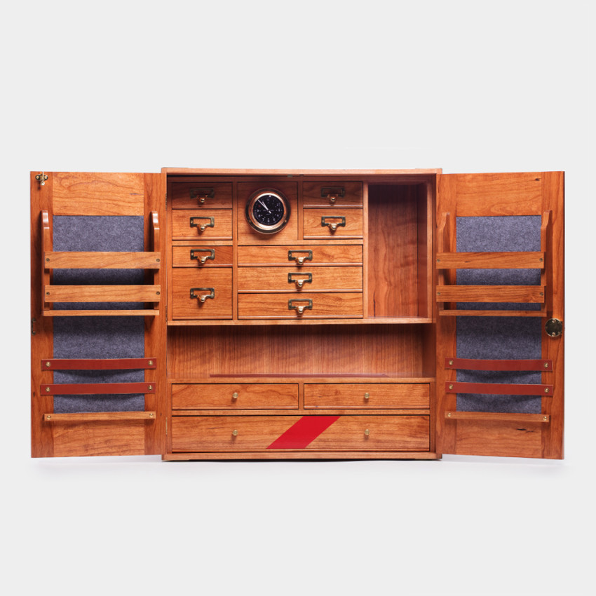 The Best Made Co x Gerstner & Sons Field Chest has twelve individually sized drawers and it delivers a tailored amount of storage space for every implement you can think of, from precision hand tools to fly-tying supplies. You’ll also find an extremely useful book cubby alongside storage nestled inside the doors which is perfectly suited to holding your essential reference manuals of the trade or much loved first editions books. The classy nature of this chest means it will be where you want to place all of your prized possessions.