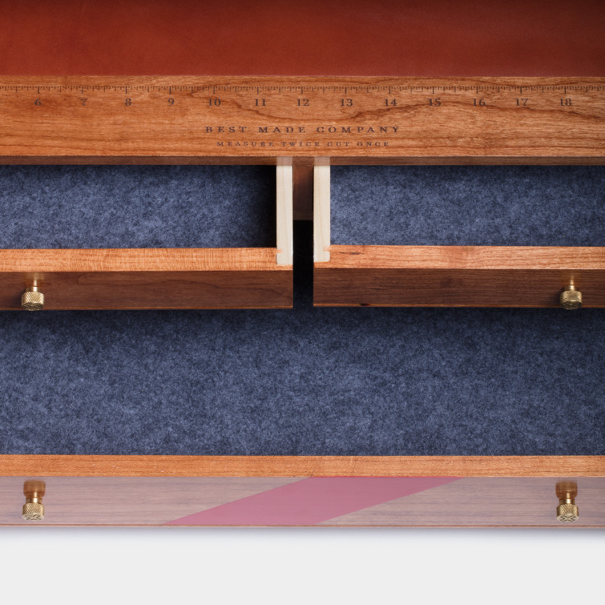 Boasting the sort of heirloom quality that you’ll want to pass from one generation to the next, the Best Made Co x Gerstner & Sons Field Chest is crafted from eye-catching and luxurious American cherry and boasts hand-fitted joinery, brass hardware, and 6-oz. leather (the same used for Best Made Co’s axe blade guards), which all combines to make this spectacular Field Chest a paragon of impeccable and unparalleled craftsmanship.