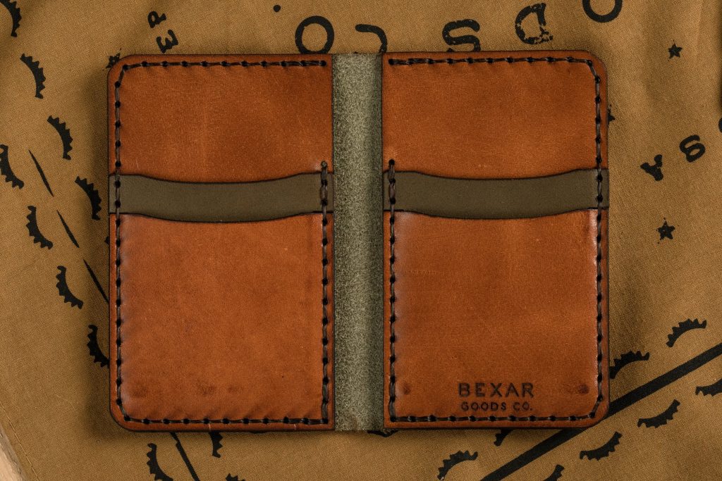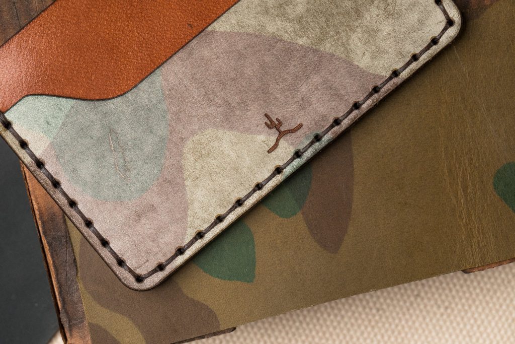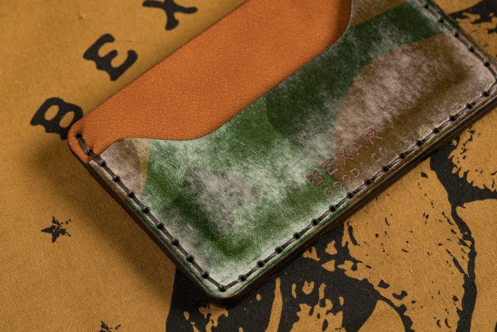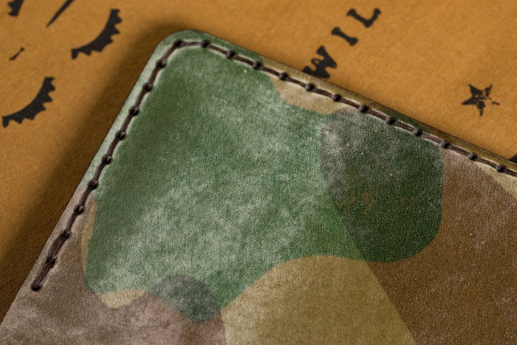 The vegetable tan leather of this Slim Wallet in Ghost Camo from Bexar Goods Co is top grade and it is full grain with a nice balance between supple and firm. The firmness will make for a more robust wallet that will break in and soften over time. It is definitely the most ambitious leather Bexar have used to date. To tell a story with your wallet, the Ghost wallet would undoubtedly be the right author of that story.