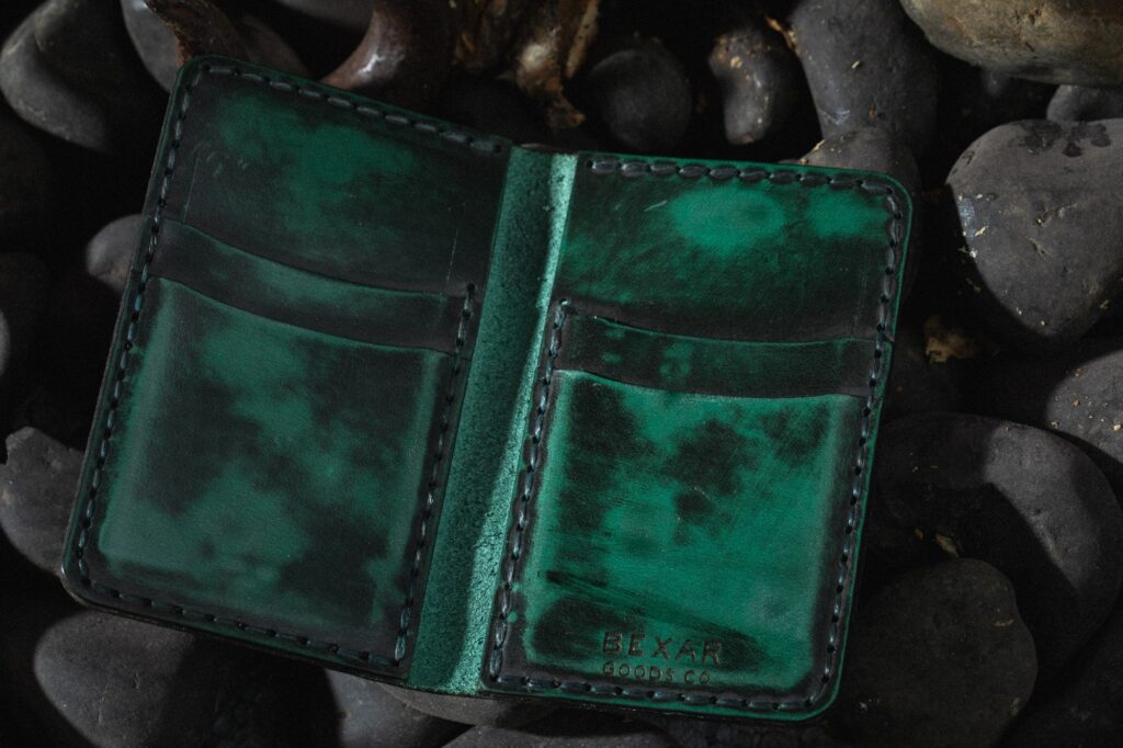 With the Bexar Goods Co Vertical Card Wallet in Ghost Green ($115) you don’t have to wait around for the wax to wane if you don’t want to. You can buff with a canvas cloth to remove some of the finish to get just the right visual aesthetic you’re looking for and want to start with. Note the wax is pretty robust and will take some effort to remove so you might want to wait for it to come off over time – which we would here at The Coolector as it will speak to the adventures you’ve taken your wallet on.