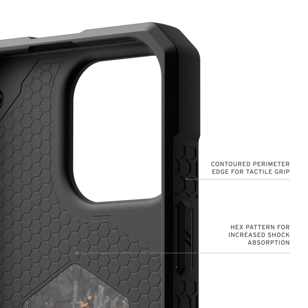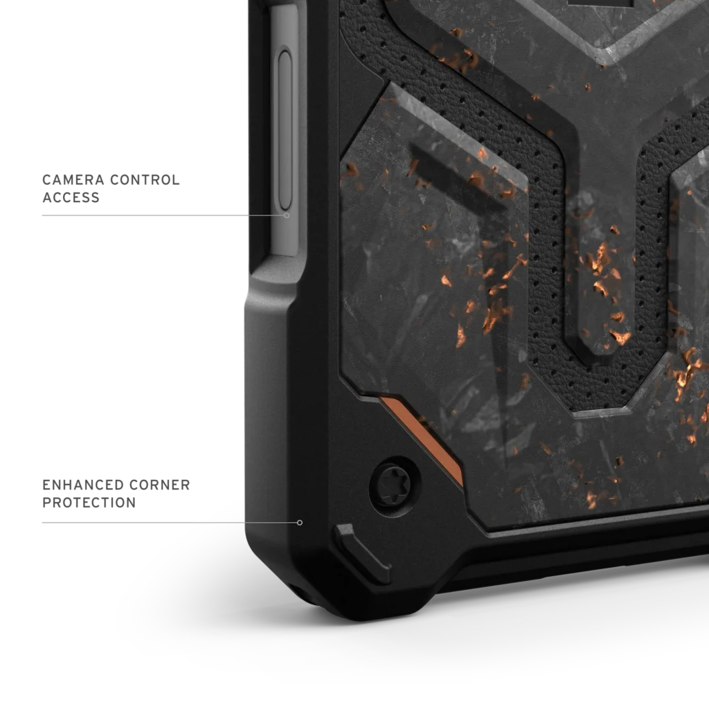 Housed within UAG’s limited edition Monarch Pro Series, this case is a masterclass in material innovation. Its core strength comes from forged carbon, a material renowned for delivering the robust integrity of titanium at merely a third of the weight. But UAG doesn’t stop there; they elevate it to an art form. Each case features hand-laid forged carbon chips, interwoven with subtle yet striking copper detailing. The result? A truly unique grain for every single case, ensuring yours stands out from the crowd with a bespoke, almost geological aesthetic, further complemented by vibrant orange accents that hint at the formidable protection within.