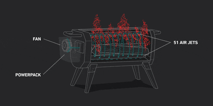 It achieves this increased level of burn efficiency through 51 airjets that inject the fire with oxygen along key locations courtesy of the fan located inside the USB-rechargeable orange power pack. This is important as it creates a more uniform temperature throughout and the mixing of gases inside the fire which has the effect of improving combustion considerably. For those who love backyard cookouts and camping adventures, this is the fire pit for you.