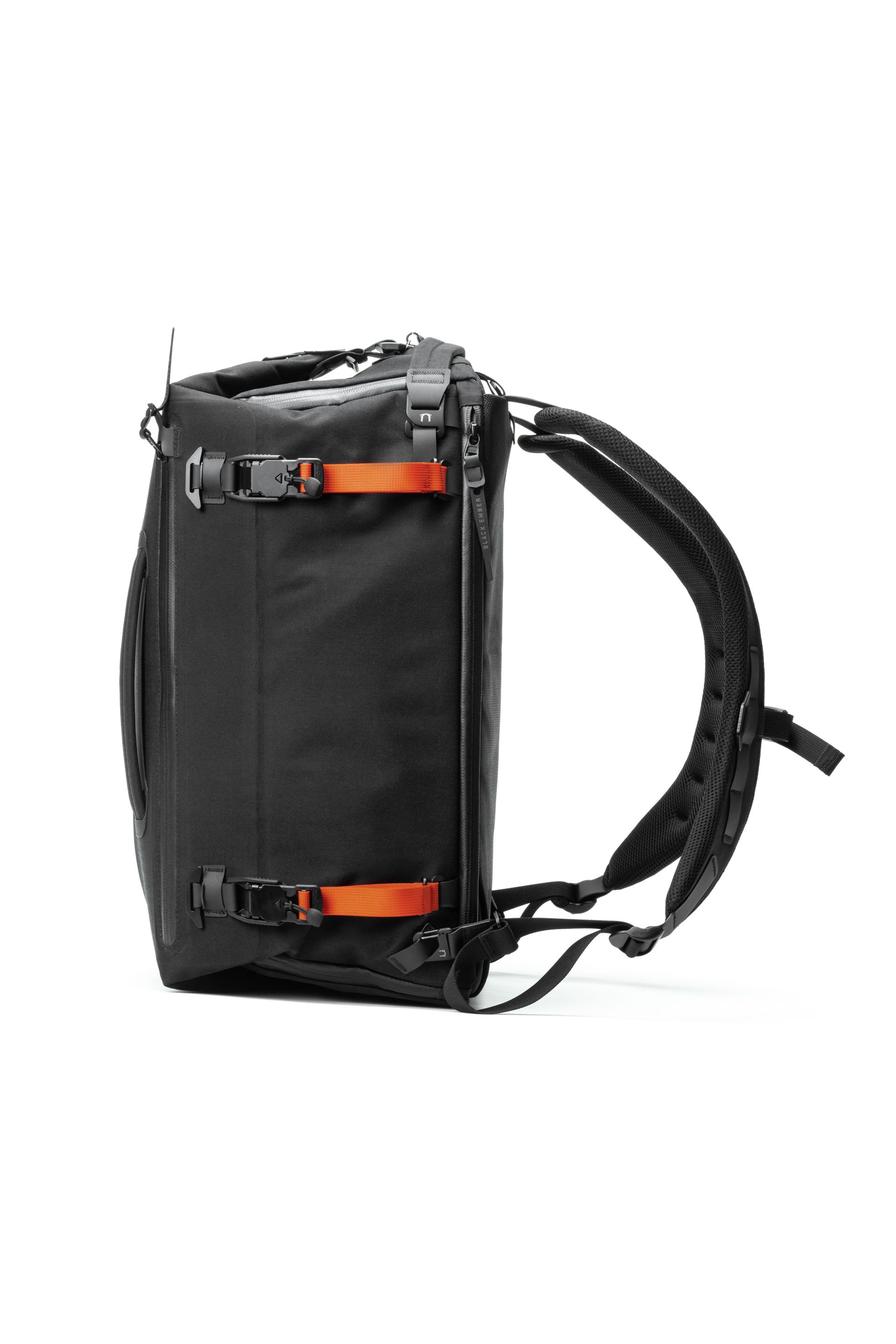 This brilliantly versatile carry has traditional duffel style handles which allows you to carry it for short distances, such as through the airport, in style but when the time comes to walk through the city to find your hotel, the DEX definitely excels itself. It boasts a composite build with a lightweight Cordura RN66 shell and a strategically laser cut and bonded hypalon panels which give it a robustness and streamlined aesthetic beyond compare. In the top pocket of the DEX Modular Duffel Packs you’ll find the Fidlock V-Buckle which has a boarding kit within that makes travelling, be it by plane or car, a doddle.