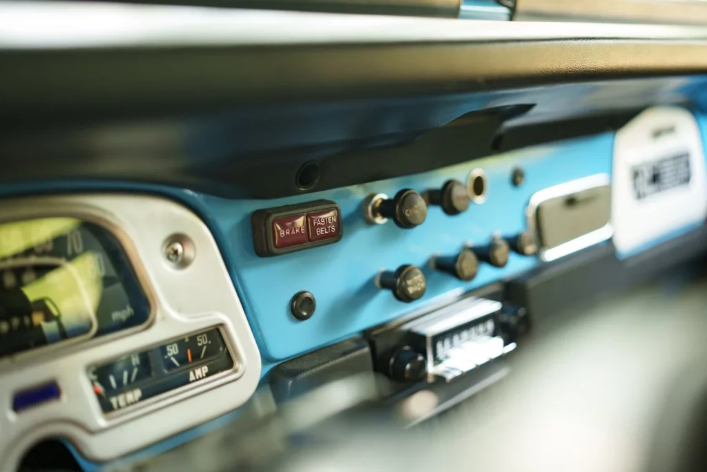 Yet, for all these upgrades, the driver still grips a restored OEM steering wheel and looks out past fresh sun visors, ensuring the tactile connection to 1979 remains unbroken.