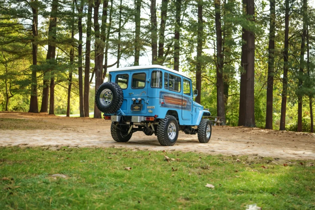 Stainless hardware now holds every panel in place with a purposeful gleam, and custom-painted half rear doors round out the unique profile. It rides on a chassis that has been completely renewed with new leaf springs, shocks, and a recalibrated steering box, bringing back the poised, truck-solid ride that defined these Land Cruisers when they were new.