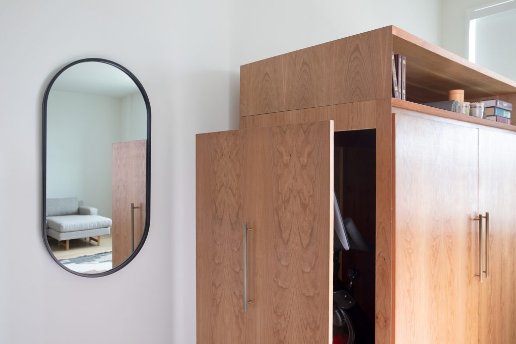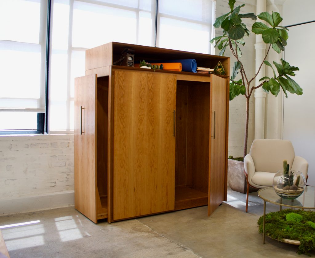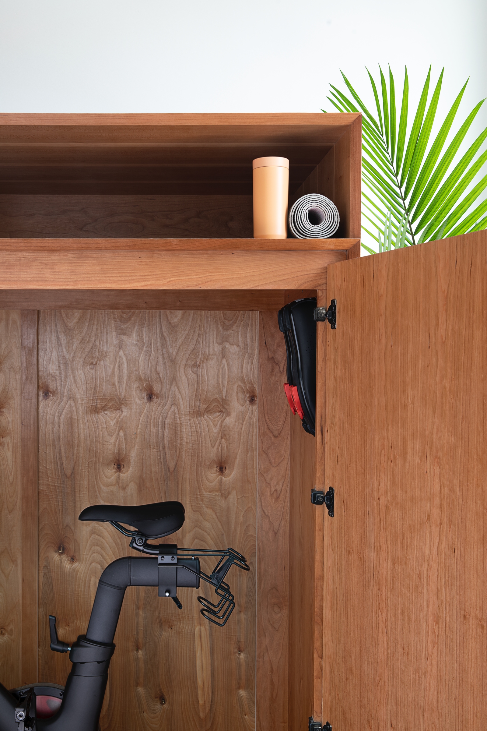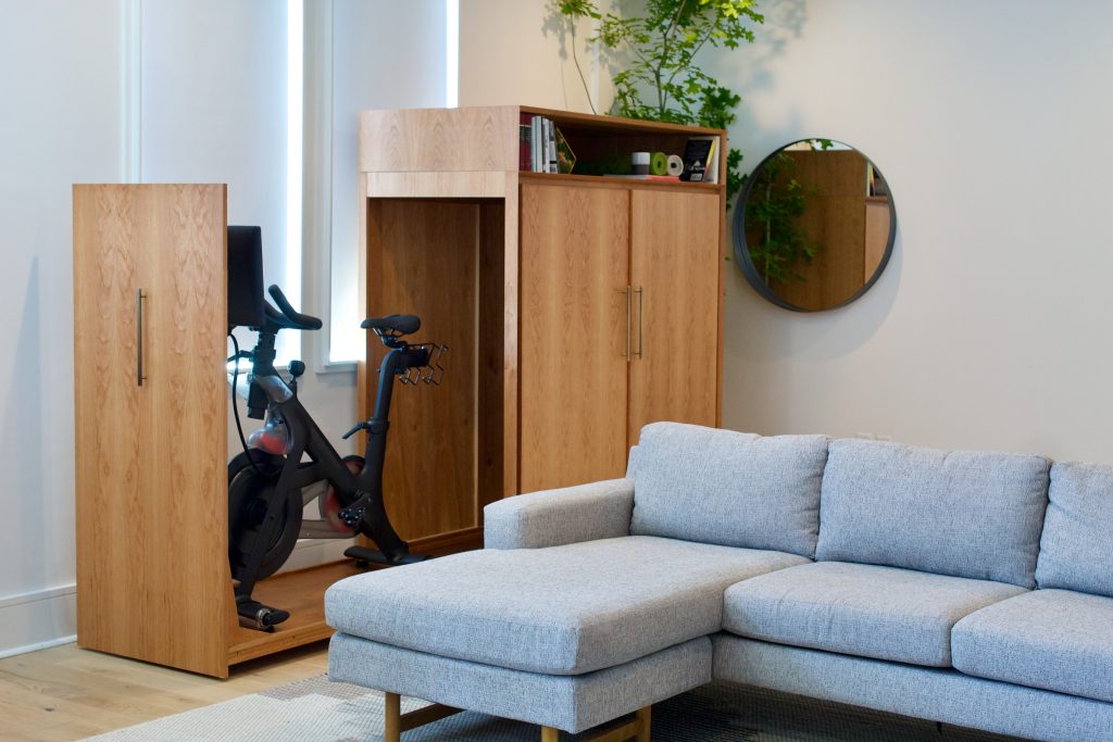 The beauty of boîtier for bike furniture is the fact that it is compatible with Peloton and other popular stationary bikes and it has been designed to be the perfect fit for any room no matter how you like to configure your furniture setup. The cabinets will be custom built to open either left or right, based on your choice and this striking piece of designer furniture is not just for workout equipment: boîtier has shelving for books, speakers, plants – basically any items that will complement your interior.