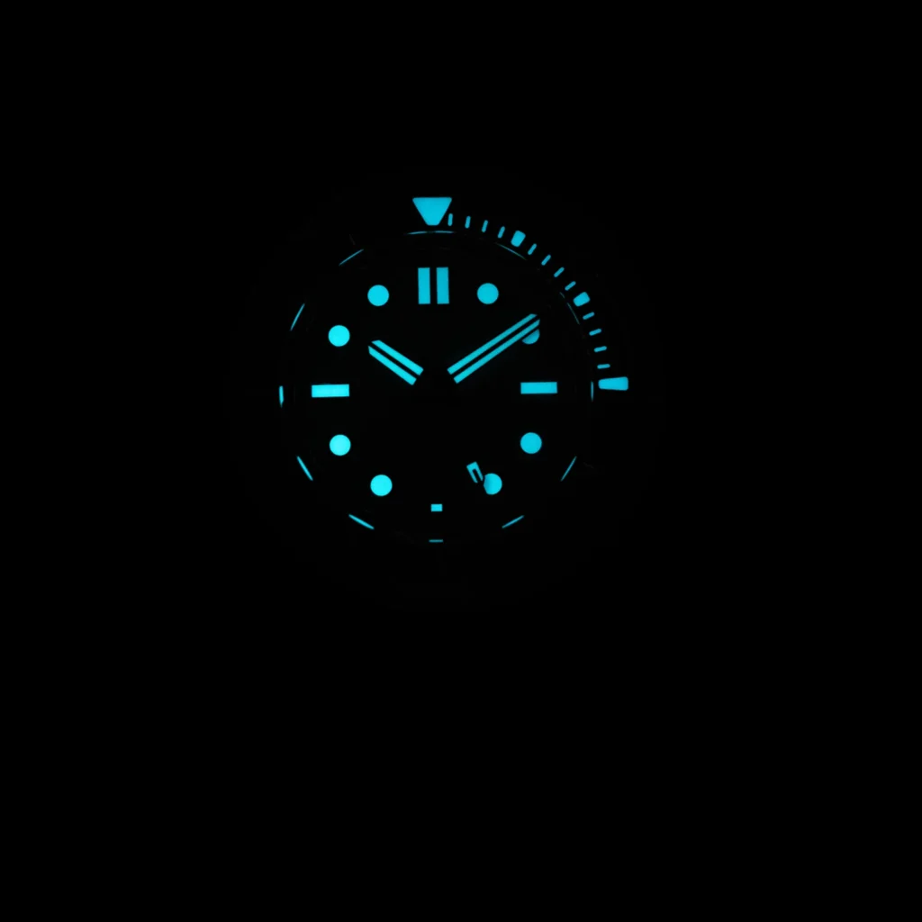 Legibility is crucial for divers, and the Odyssey Black Abyss 2.0 excels in this area with BGW9 Swiss Super-LumiNova®. This powerful lume ensures the dial is visible in low light conditions, complemented by a double dome sapphire crystal with an inner anti-reflective coating. This crystal not only offers clear visibility but also robust protection against scratches and impacts.