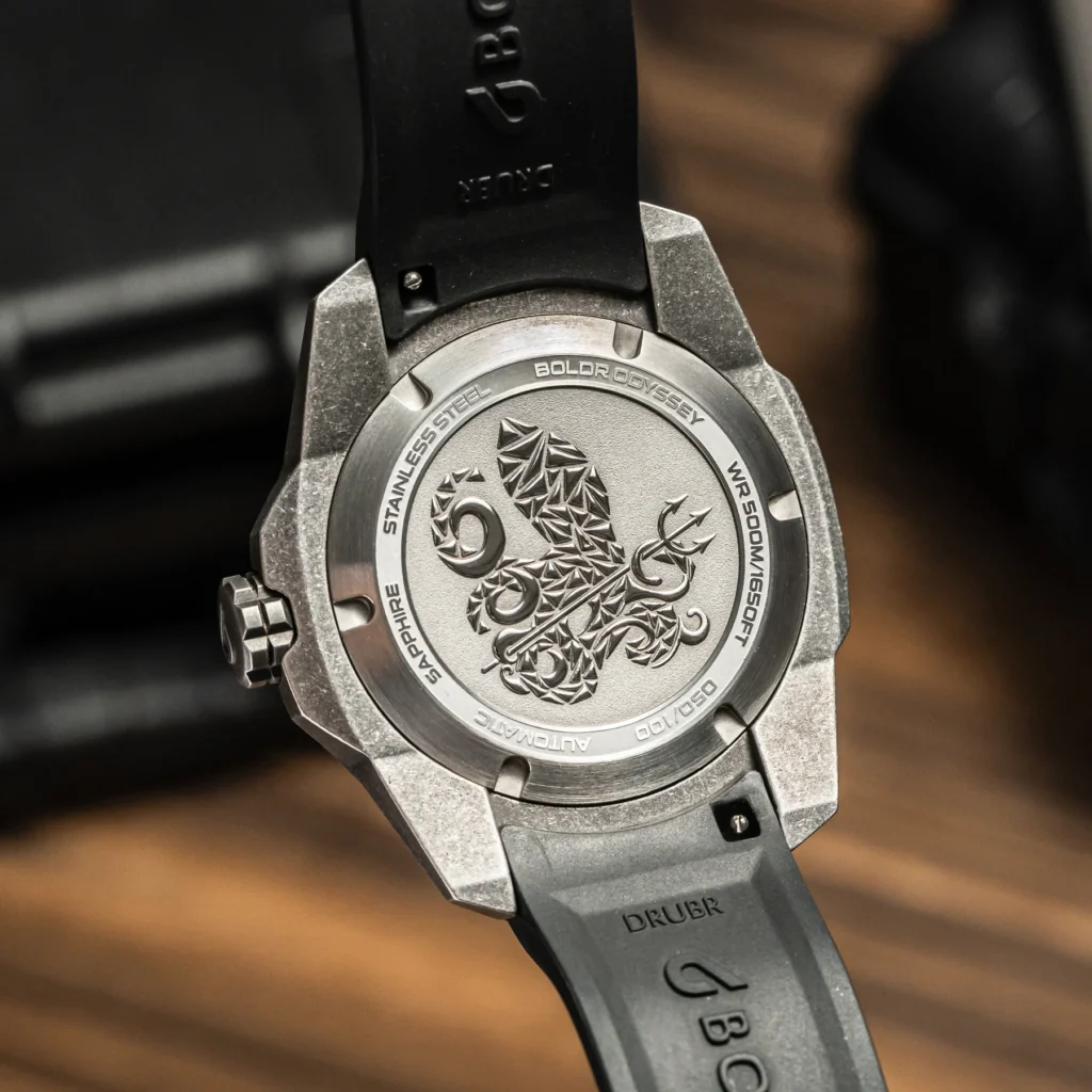 With only 100 pieces available, the Odyssey Black Abyss 2.0 is a limited-edition masterpiece. Each watch features a single-piece screw-down case back with embossed limited edition artwork, adding to its unique appeal. The individual serial numbers, ranging from 001/100 to 100/100, make each piece a collectable item.
