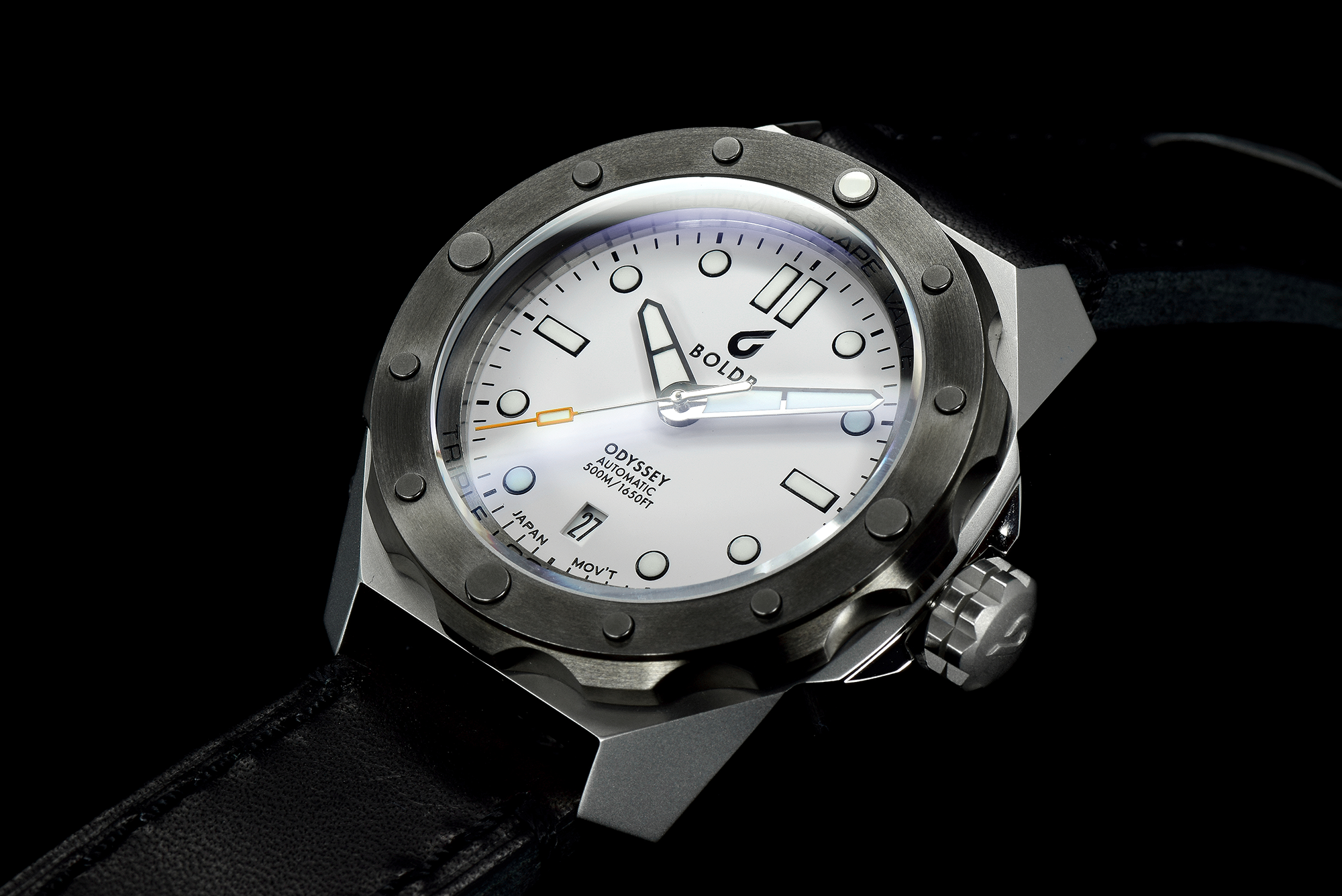 This magnificent looking timepiece from BOLDR boasts an incredibly robust case which is actually meant for diving unlike a lot of other dive watches on the market. It can ride rough waters with an ultra strong, high-resistance 6-screw caseback, which is rated for up to 500m water resistance. The Odyssey also has a screw-down crown with triple lock mechanism, a highly resilient automatic movement from Seiko alongside a special helium escape valve which will ensure your watch stays strong under any pressure, and has been tried and tested for your toughest underwater challenges.