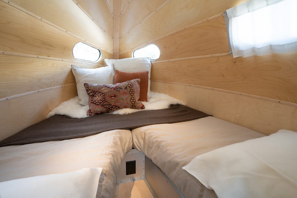If you’re caring about the environment, this is the trailer for you as you’ll never find yourself stranded during your zero-emission road trip with a Bowlus as the external 110V outlet additionally can give an emergency micro-charge to your electric vehicle. With a full battery, the Bowlus could extend EV SUVs currently on the market for up to 16 miles. This trailer is also outdoor kitchen ready and comes with a 110V outlet and propane outlet. This kitchen-ready set up allows each owner to customise this to their needs, and appliances like induction cooktops, propane bbq’s, or even a margarita blender are ready to plug and play. After the ultimate in luxury trailers? Call off the search.