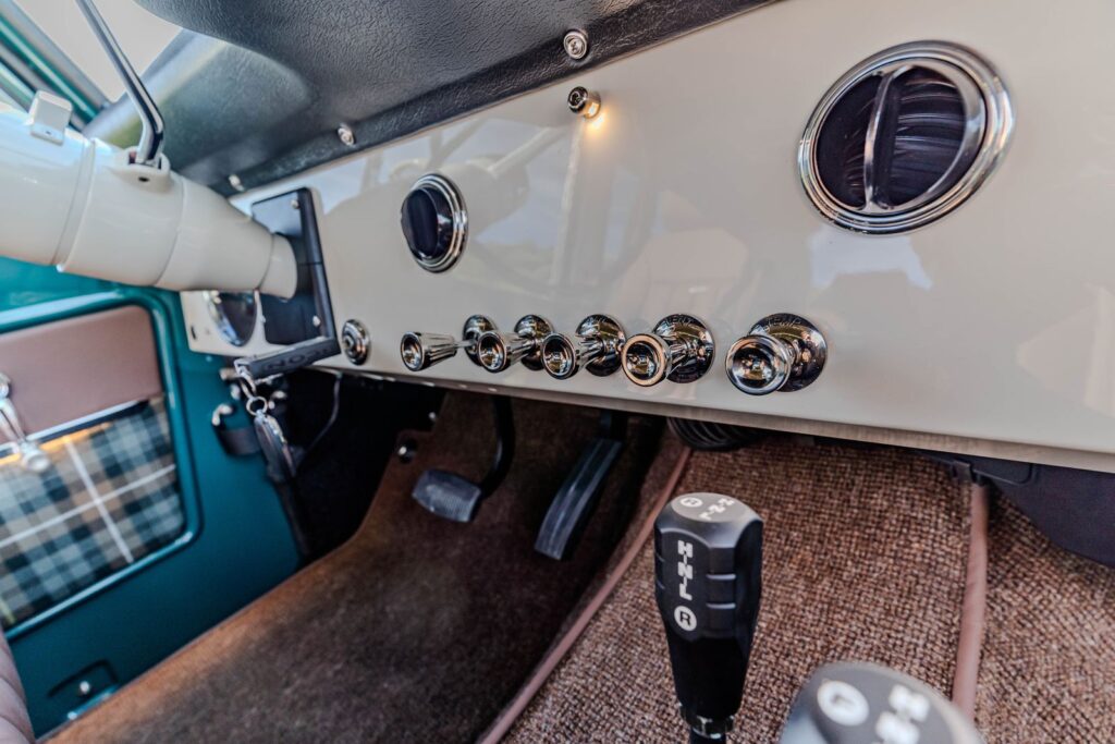 Despite its rugged off-road pedigree, the cabin is discreetly packed with state-of-the-art modern comforts, including a hidden Pioneer NEX hi-fi audio system, front seat heat blankets, and a Vintage Air Gen 5 climate control system.
