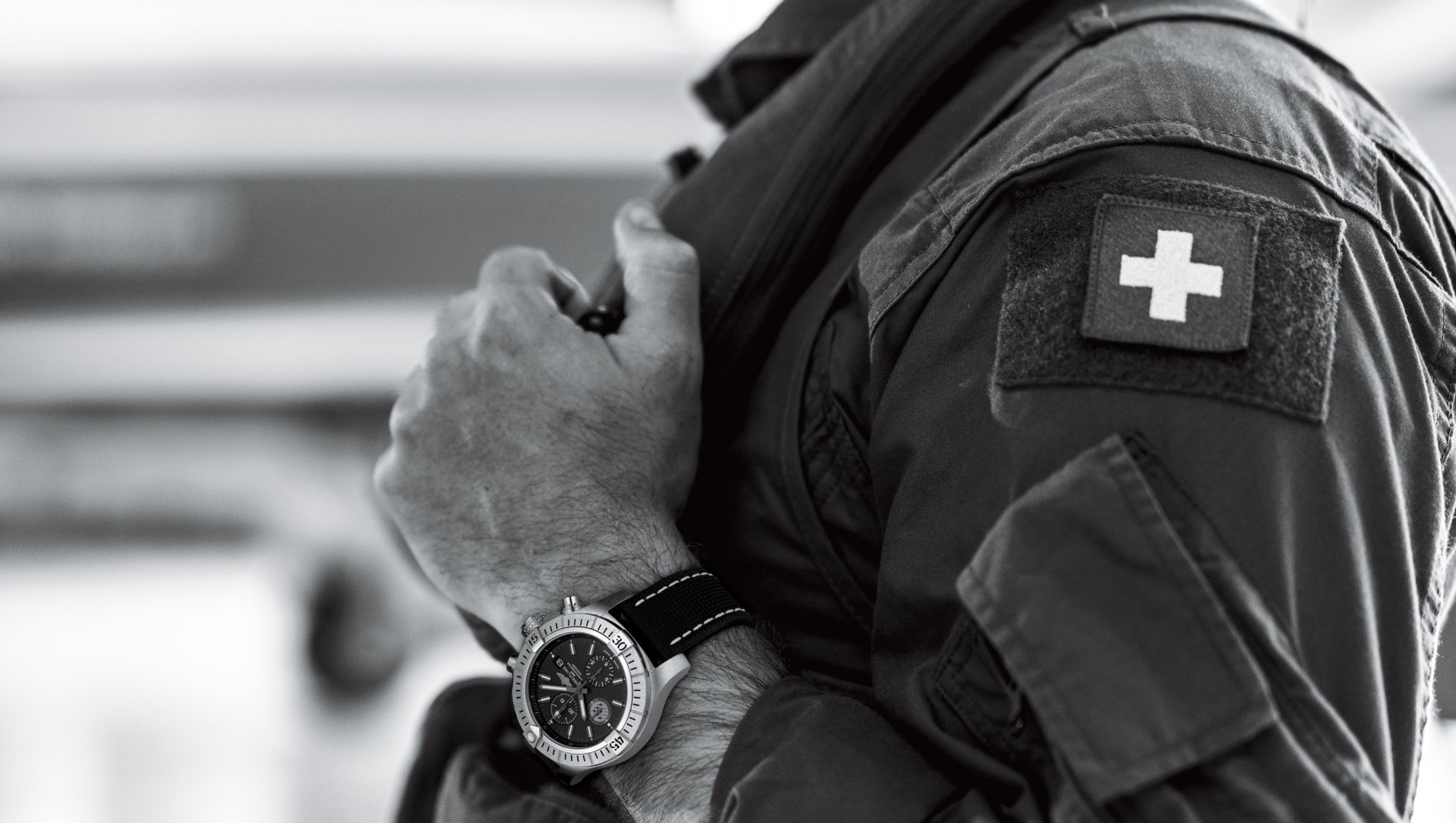 The Breitling Avenger Swiss Air Force Team Limited Edition Watch boasts a no-nonsense 45 mm stainless-steel case with a ratcheted unidirectional rotating bezel that delivers a tangible sense of quality to the timepiece. Its striking black dial features the logo of the Patrouille Suisse squadron on the subdial at 9 o’clock as well as the highly distinctive yellow and red accents that reflect the colours of the Patrouille Suisse squadron’s logo. The yellow-tipped second hand adds another dash of colour to proceedings and makes this one of Breitling’s most visually impactful timepieces in some time.
