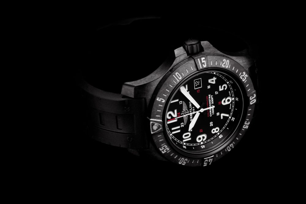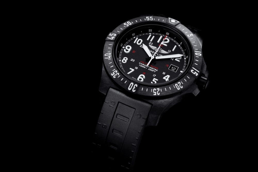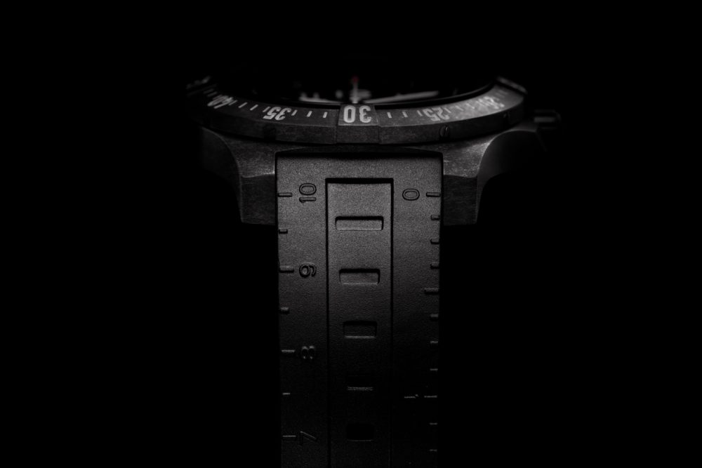 Featuring Breitlight® which is over three times lighter than titanium and a whopping six times lighter than steel but despite this lightweight nature, it is actually significantly more robust and harder than them both. This exclusive high-tech material is truly set apart by a vast array of qualities – the most notable of which include an exceptional resistance to scratches, traction and corrosion as well as a warmer ‘touch’ than metal along with a slightly mottled effect which serves to add still further to the aesthetic appeal of this first class aviation timepiece from Breitling.