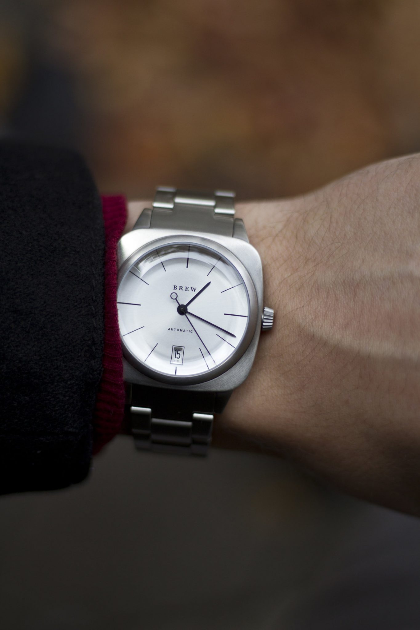 There is a distinct retro style feel to the HP1 Watch from Brew Watch Co and it has second and minute hands which follow the same contour as the dome dial ever so slightly. In addition to this, the dial has even more muted details that make the wearer look closer whenever they glance at the time. Etched minute markers run from 10H-12H and resemble the “high pressure region” which has taken its design inspiration from industrial espresso machines.