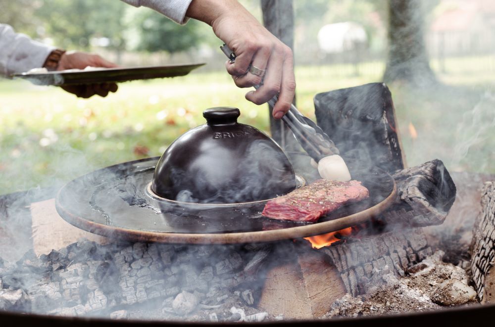 The Bricknic BBQ Planet is a versatile barbecue that allows you to cook multiple dishes at once using a single heat source. It is made of glazed ceramic, which provides a natural and pure cooking experience. The BBQ Planet has a large grill surface on the outside and a cooking bowl on the inside.