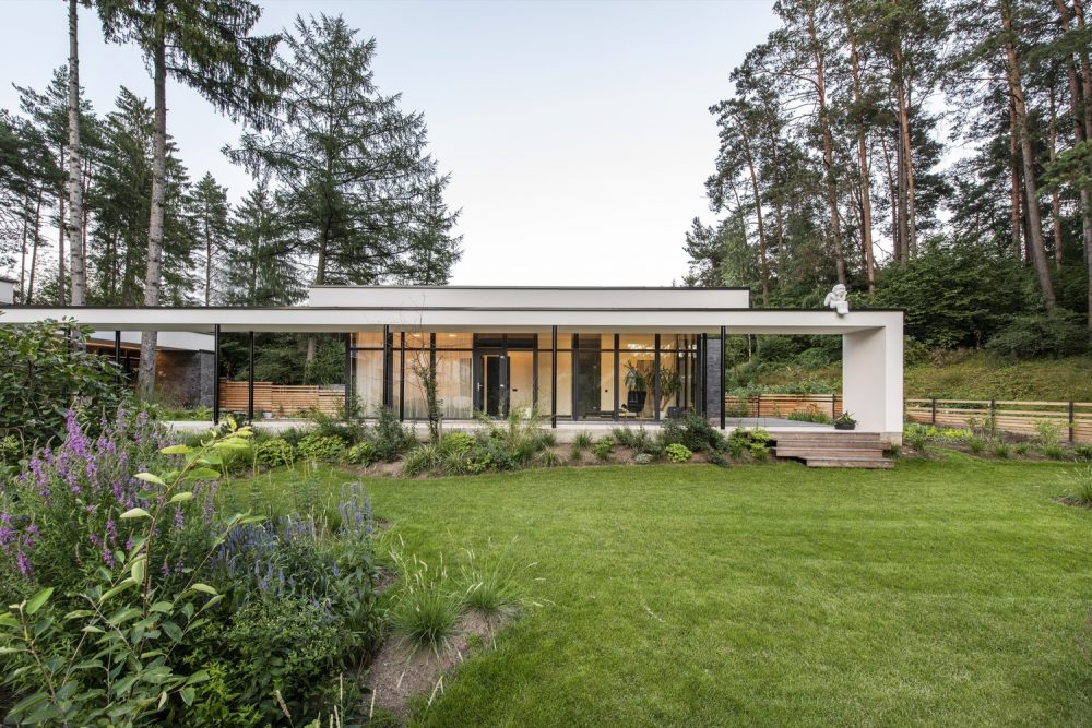 The Bridge House from ArchLAB has an expressive, contemporary style which has been designed in a plot that is completely surrounded by nature and offers a relaxing retreat for the residents. It has pine forests are both sides of the property and it was the client’s desire to find such an oasis in unspoilt nature with a small river or creek. Due to the proximity of the river to the property, it became a specific task for the architects to incorporate because the flowing water divided the land into two parts and the house design had to take this fact into account – something it does with, you guessed it, a bridge.