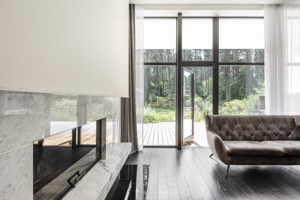 The Bridge House from Lithuanian architects, ArchLAB, has a footprint of some 187 square metres so there is plenty of space for the designers to play with and they have filled it with some thoroughly impressive features which make it such a relaxing, effortlessly cool place, surrounding by trees and with amazing views throughout.