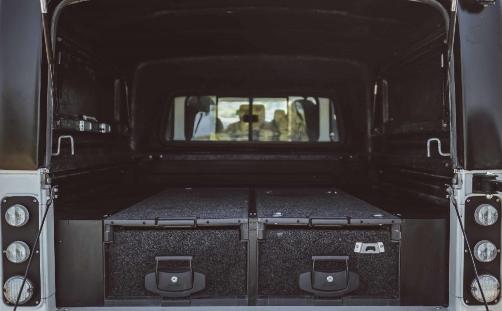 No expedition truck would be complete without an onboard water tank with marine pump and shower, or the luxury of heated front seats, air conditioning and JL speakers so you’ll be pleased to hear that all these features can be found on this Brooklyn Coachworks Land Rover Defender 130 Expedition ($150k). Boasting an Alpine White paint job with matte black wheel arches, there is a striking, no-nonsense aesthetic to this first class steed. Black Genuine Land Rover Boost wheels with BF Goodrich 285/75/16 All-Terrain tires makes this truck sit stout and ready for anything. Black Terrafirma rock sliders and aluminium skid plate make this beast ready for any adventure you can throw at it.