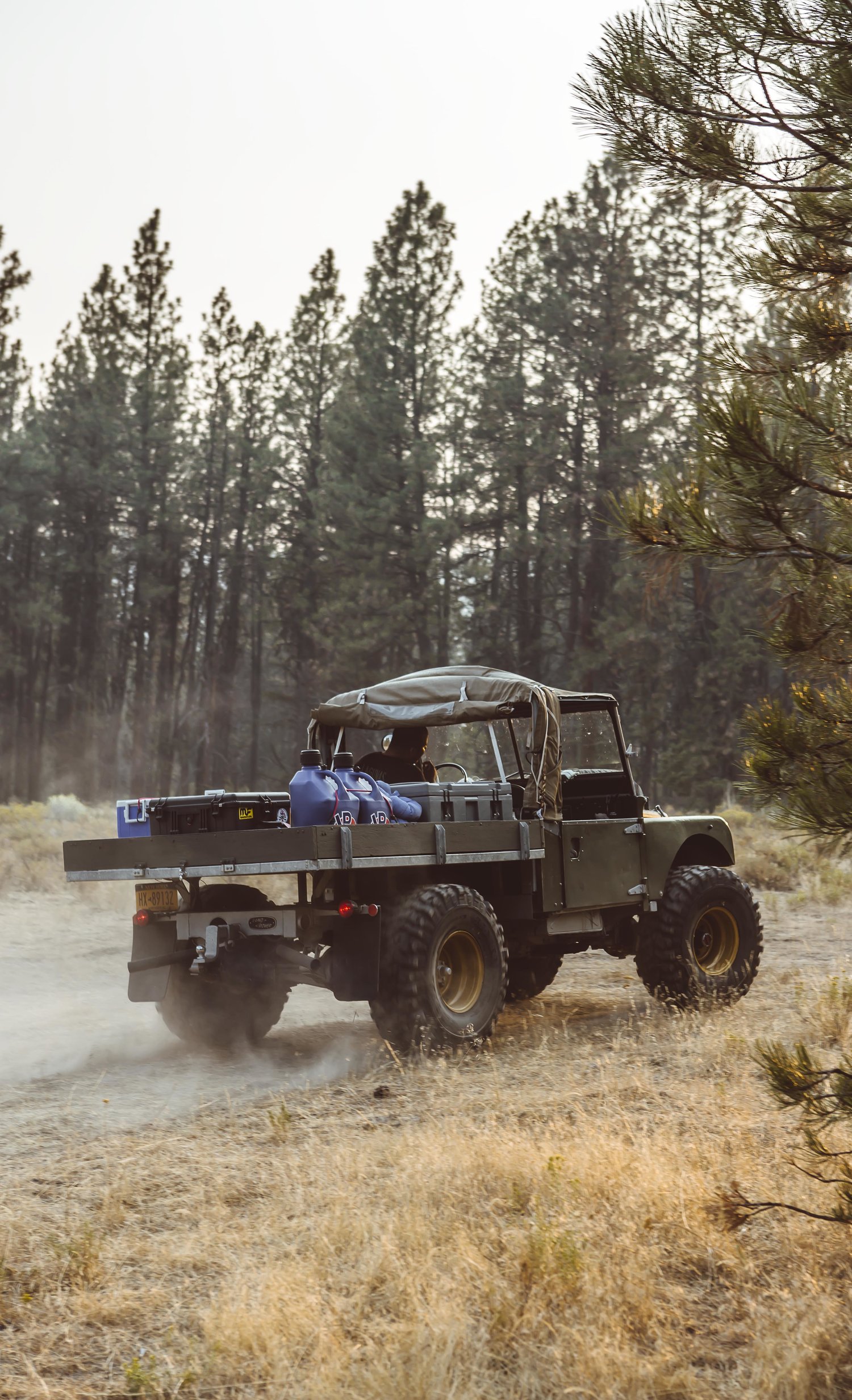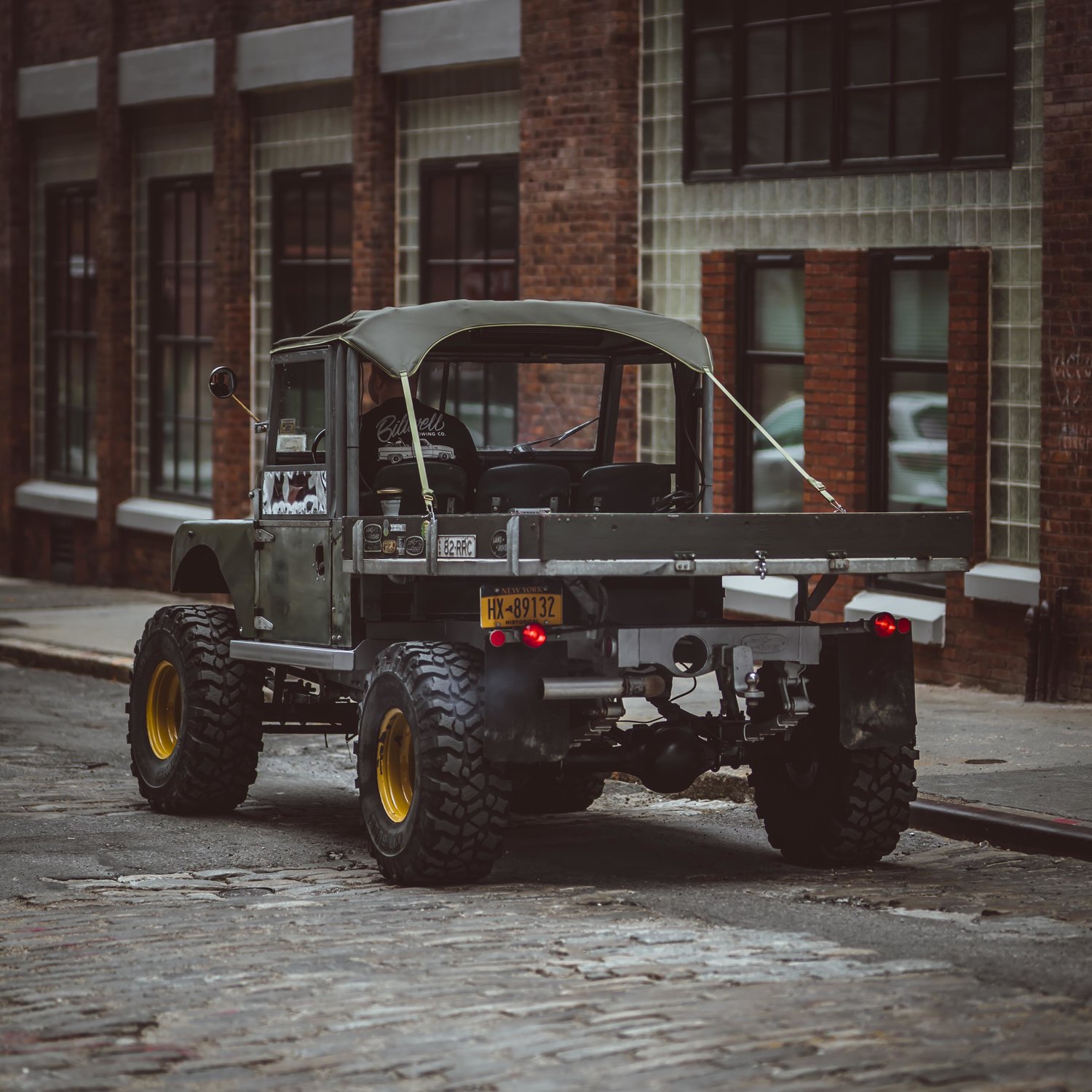 The frame of the Brooklyn Coachworks Land Rover Series One 107 UTE sits on leaf springs that are over Rovertracks converted Range Rover Classic 30 spline axles with Toyota differentials for extra heavy duty support. It boasts non-assisted disc brakes on all wheels for the ultimate in control and performance. All this with a Chevy 327 matted to a NP435 4 speed transmission to pull this beast pretty much anywhere you can think of. The truck also featured on the cover of Alloy+Grit Magazine in which three friends drove it cross country from Seattle to New York so you know that it’s got a good track record in covering all sorts of terrains.