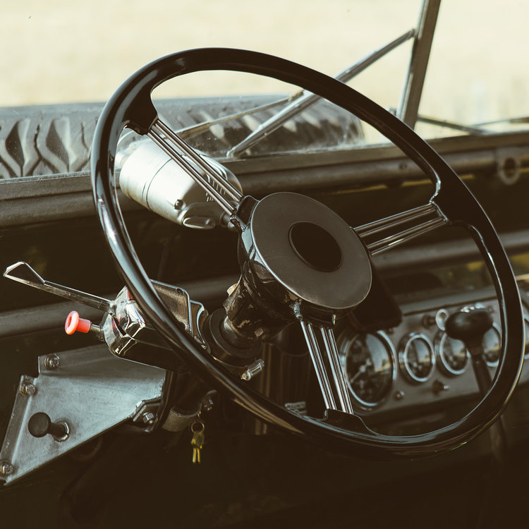 All this new power with the Brooklyn Coachworks Land Rover Series One 107 UTE is matted to a bulletproof NP435 4 speed transmission then to a Land Rover Series transfer case. The front axle is a Rovertracks converted Range Rover Classic axle assembly that has 30 spline chromoly shafts, Linchfield CVs, disk brakes, Toyota 3rd member with 4.11 heavy-duty gears and air locker. The rear axle of this stunning steed is also a Rovertracks converted with 30 spline chromoly shafts. Toyota 3rd member with 4.11 heavy-duty gears and Yukon Zip Locker.