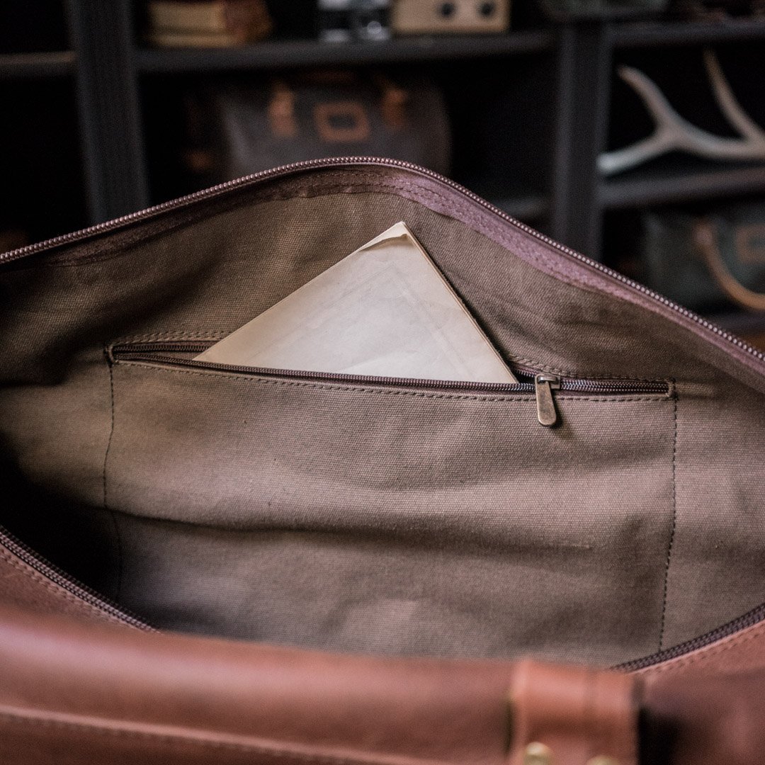 Quality abounds with the little touches of the Roosevelt Travel Bag as well because you’ll find neat little additions such as the genuine iron and brass hardware which adds a touch of gravitas to the aesthetics and a pleasing visual vibe to boot. It has three exterior, buckled, pockets which are perfect for storing your smaller bits and pieces and various forms of EDC such as a smartphone and keys. It has an adjustable shoulder strap with removable clips which gives the bag more versatility to be carried however works best for you, depending on where you are and where you’re going.