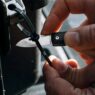 Designed in their London studio by an ex-Dyson engineer, these first-of-their-kind mechanisms are precision wire-cut from a single solid block of titanium using a highly technical process called electro-discharge machining.