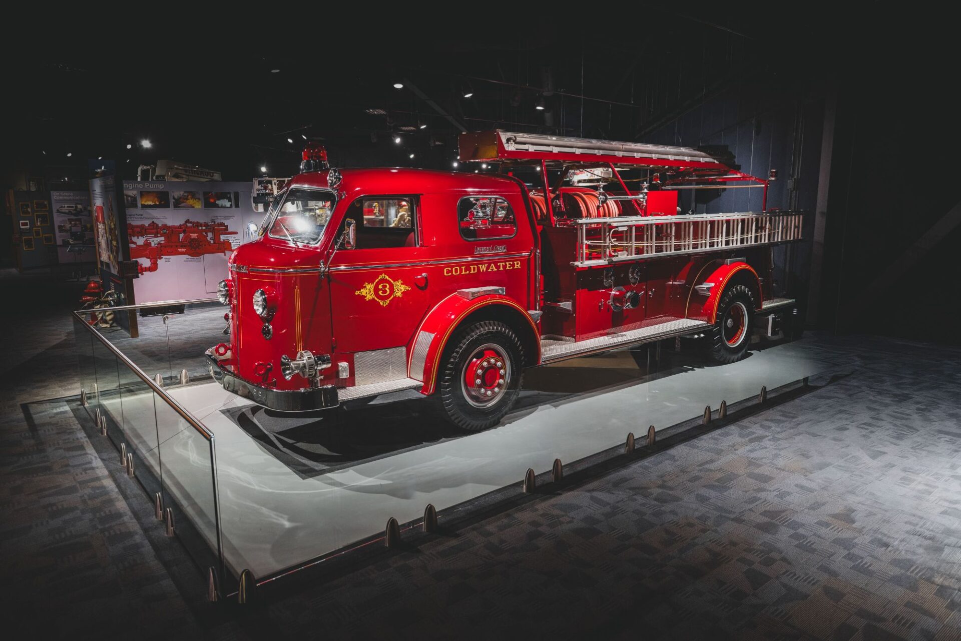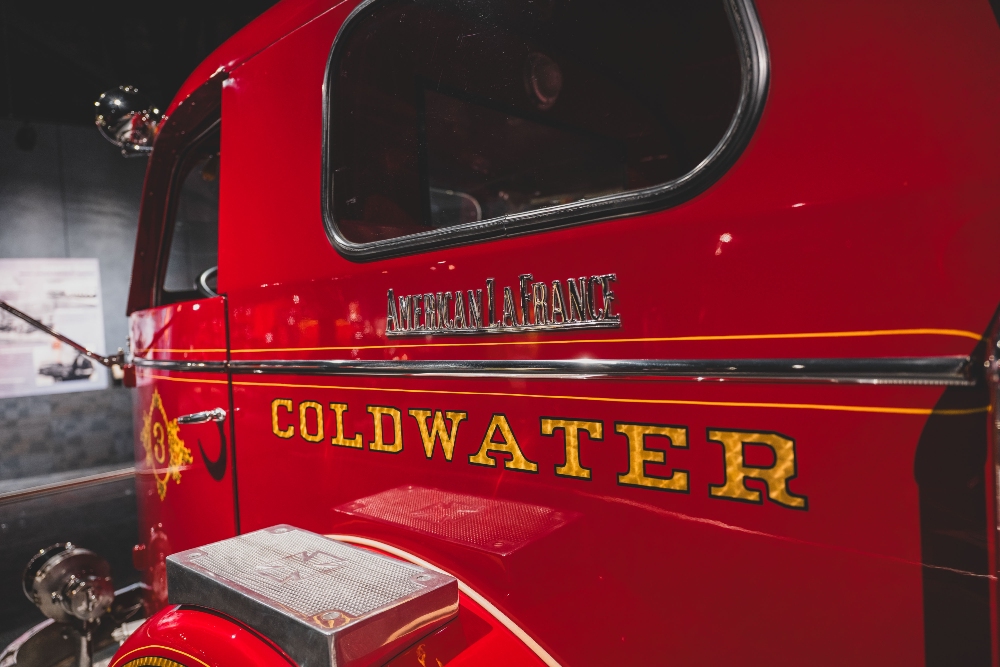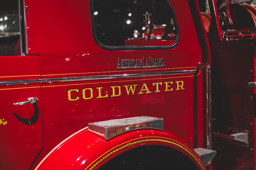 Delivered new in March of 1956 to the fire department of Coldwater, Michigan, it spent decades on the front lines, serving its community with a setup that included a 35-foot extension ladder, dual hose reels, and a robust 750-gallon-per-minute pump.