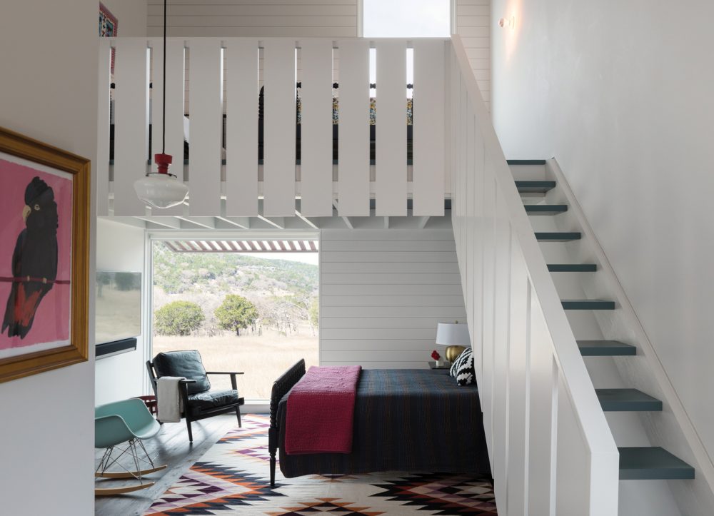 There are secondary sleeping spaces at the Camp Frio Retreat that occupy an attic that spans the rear porch of the main house while cottages feature open “kid’s” lofts. The structures of the retreat were chosen and detailed for simplicity of construction with readily available, local materials which were then fashioned by local tradesmen to give the whole property a sense of local pride and craftsmanship.