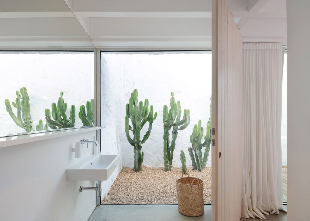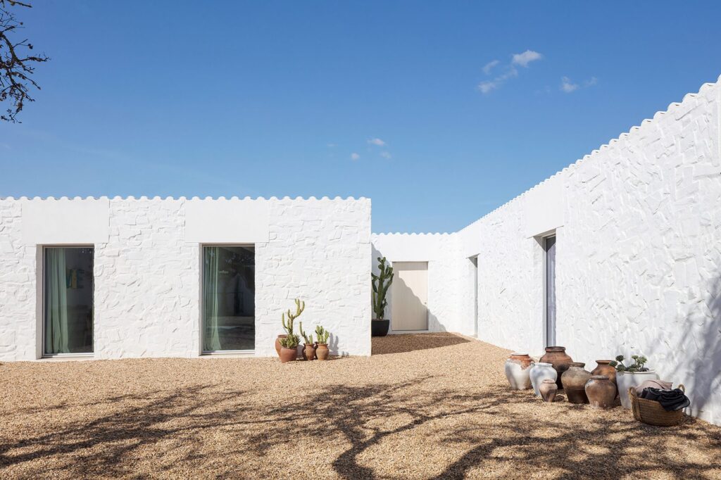 The white washed walls of Casa da Volta really help to deliver a tradition style to its exterior and it’s only when you head within that there are plenty of contemporary features to help ensure this holiday home is fit for 21st century living. The property boasts two small entrances – a corner gateway for cars and a small door for people – which lead into the holiday home, where you’ll find a large planted gravel courtyard that is surrounded by three blocks arranged in a U-shape.
