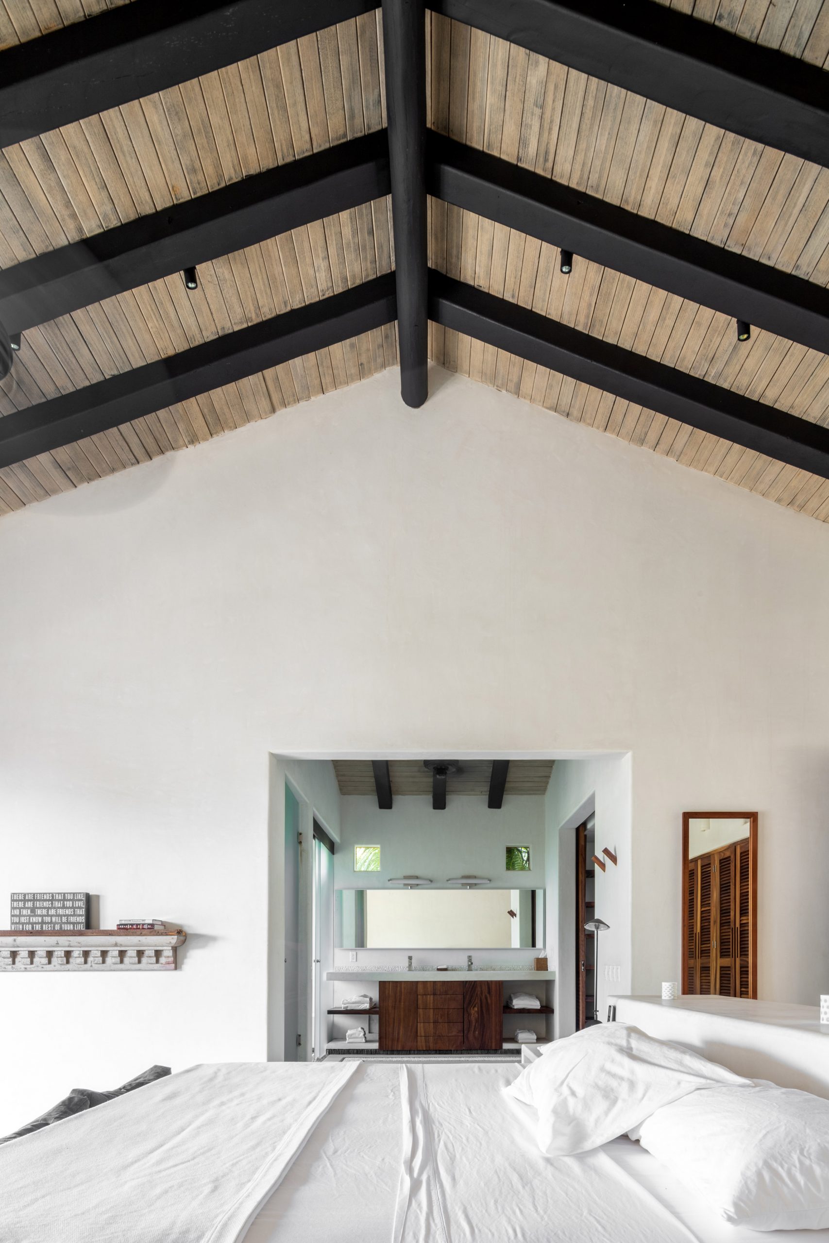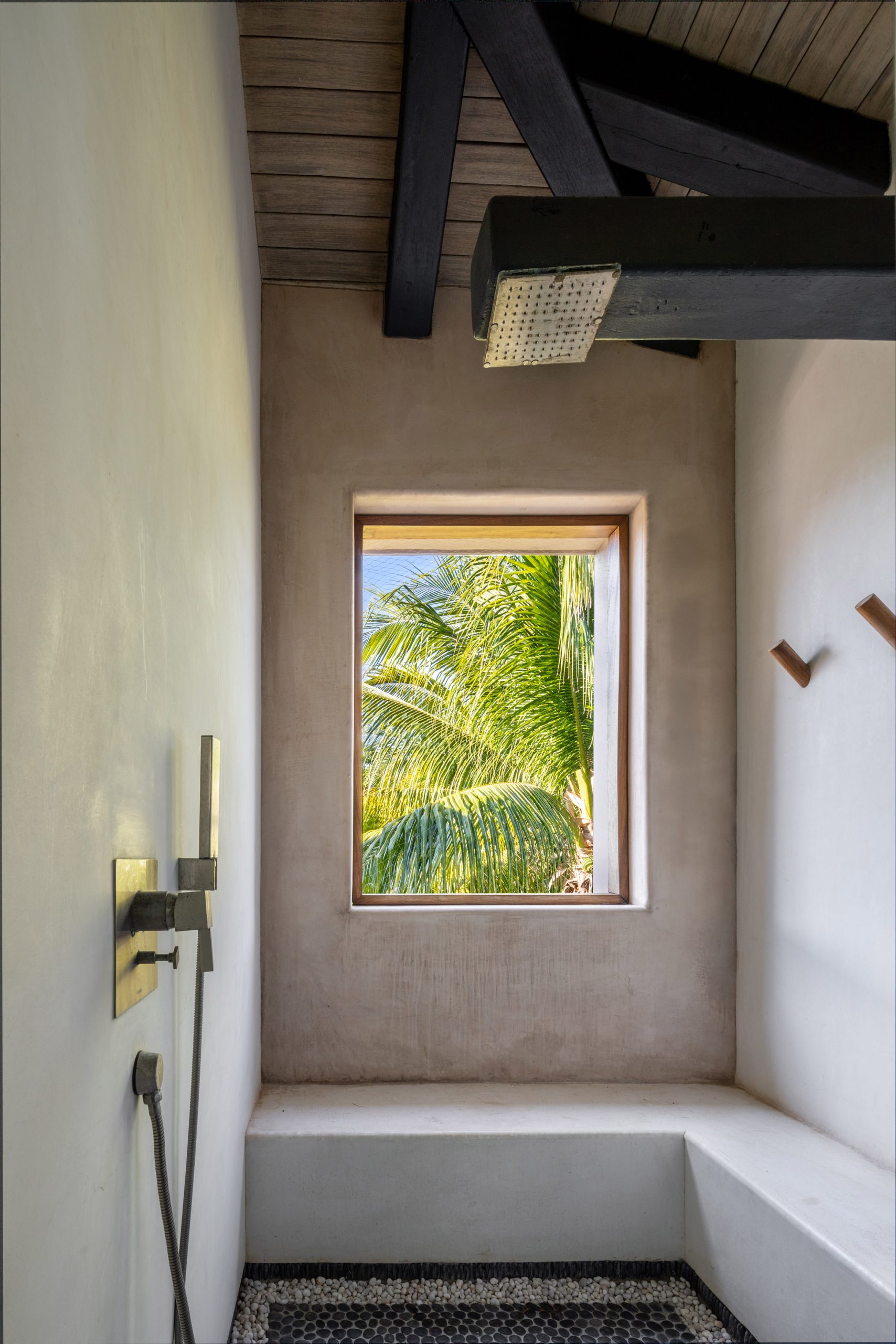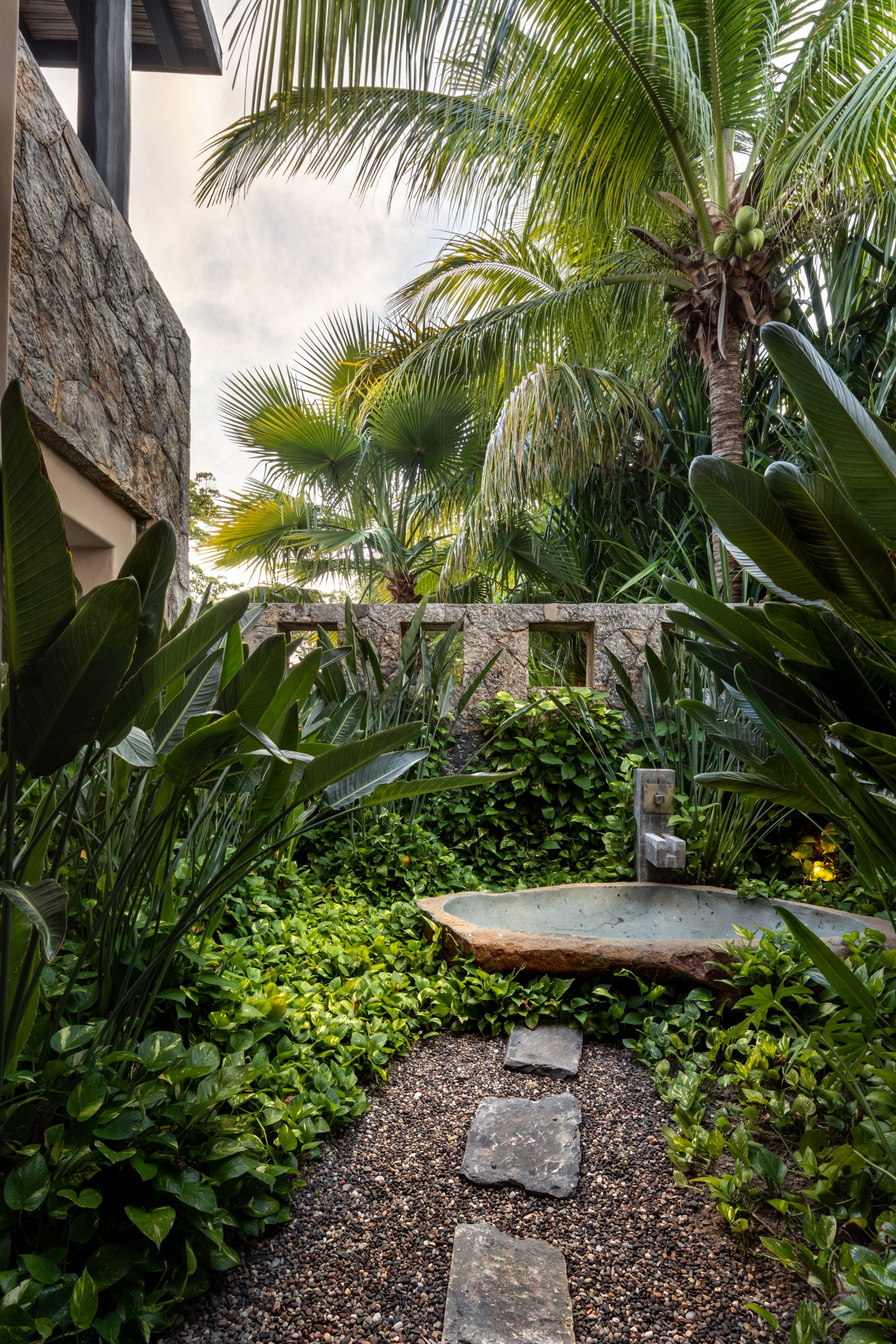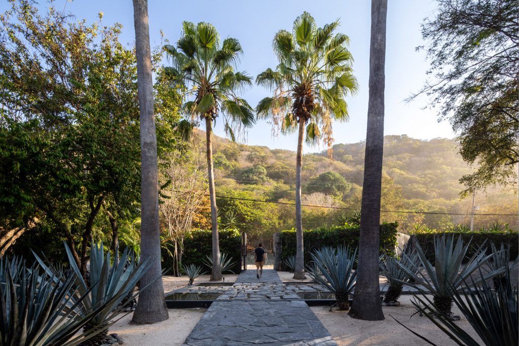 A wonderfully well crafted stone wall and lush greenery conceal Casa La Vida from the road and reveal only the dry palm roof of a central palapa, which is a gabled building made from dried palm leaves. This is something which are regularly used in the region because they deliver shelter, allow for natural ventilation and reduce solar absorption – whilst also ensuring the traditional aesthetic to this contemporary build.