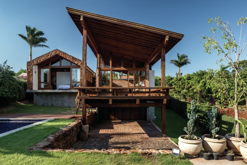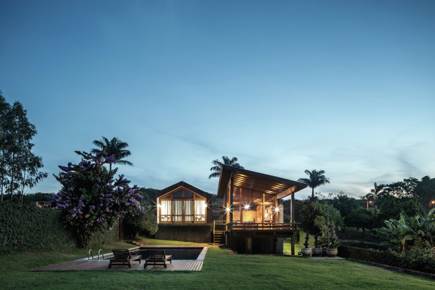 In the generous garden plot of Casa do Lago there is a fantastically luxurious and contemporary swimming pool that is the ideal entertainment spot and it has an open plan design which offers uninterrupted views out to the river and the countryside beyond. The wooden hut style design of the property immediately gives it a South American style aesthetic and a cooling disposition that is crucial in what can be an unforgiving climate in Brazil.