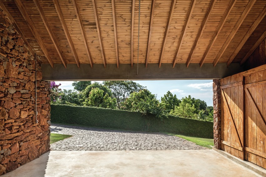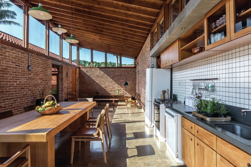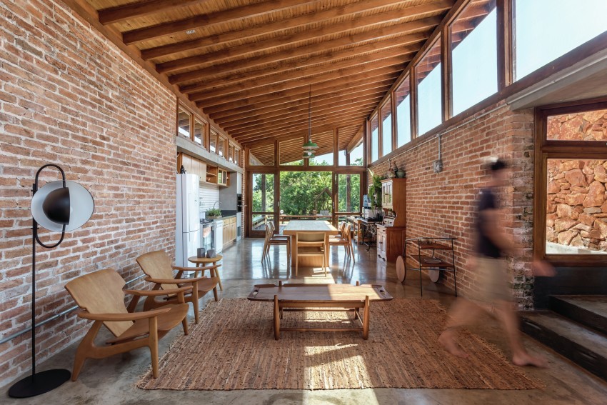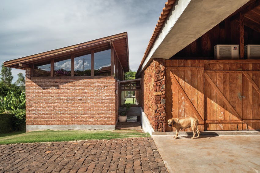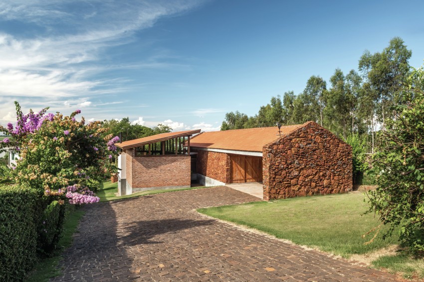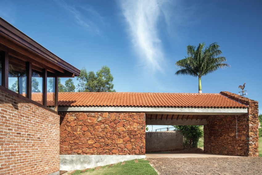 Much of Casa do Lago was made from stones extracted from the site before construction began which add a beautiful layer of red colours synonymous with the region to the project. In addition, the social volume of the home has it’s own unique history in so much as it was built using bricks from an old factory owned by the family, which were disassembled carefully to build their new holiday home.