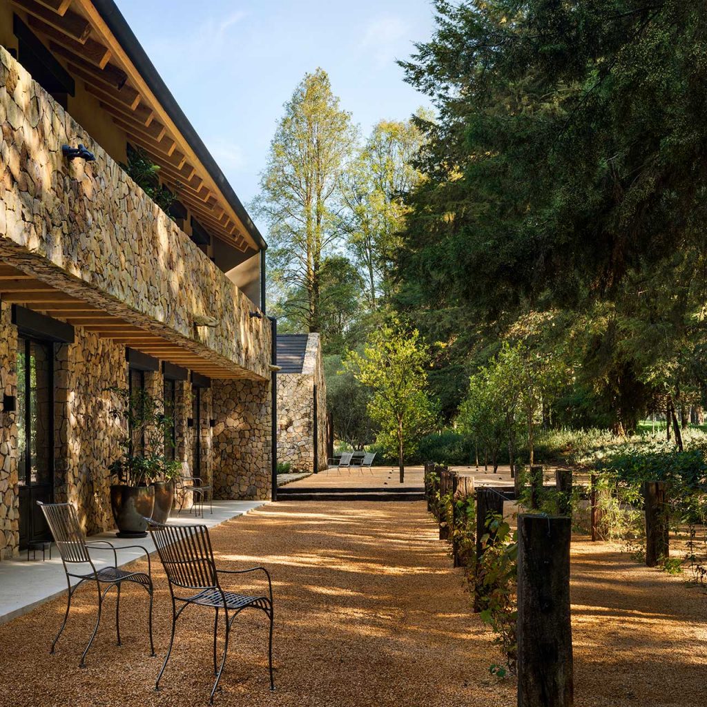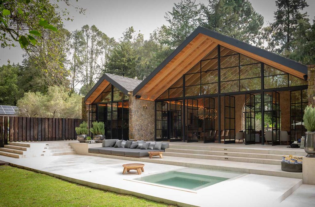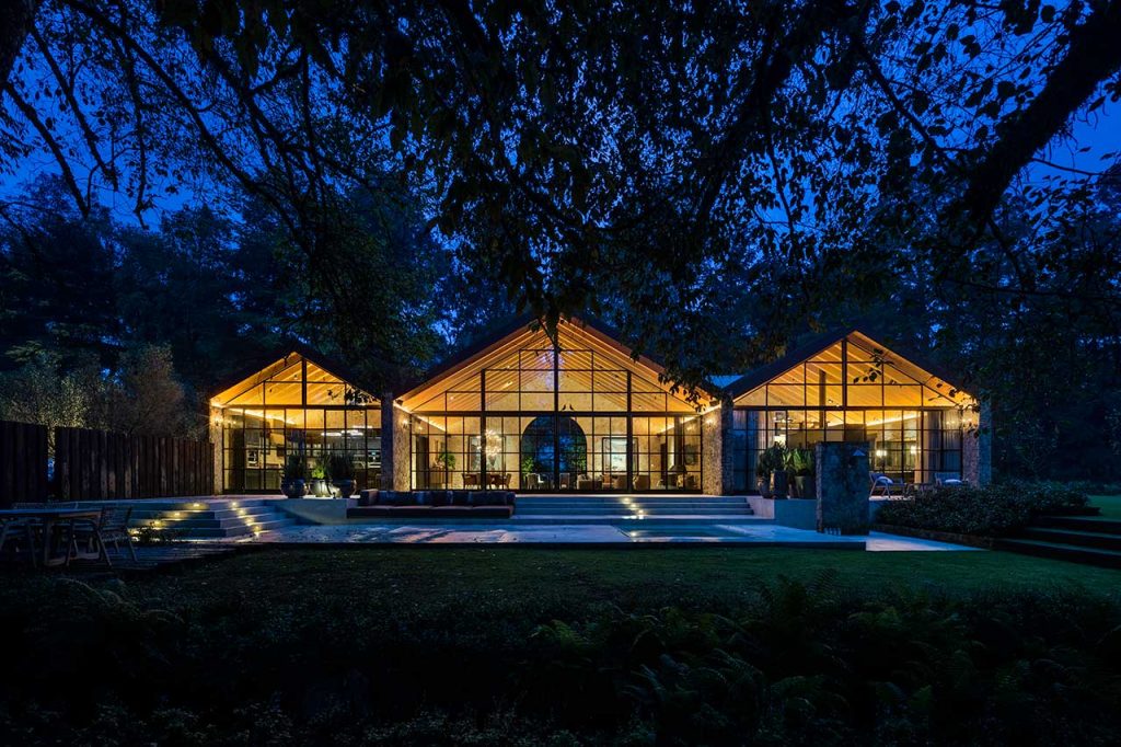 Casa Rancho Avándaro from Chain + Siman consists of three structures each one boasting a gabled roof and stone walls that found the perfect balance between rustic and contemporary design. The middle volume acts as a public space with the living room and dining room, with adjoining wings where you’ll find the kitchen and main bedroom which includes a mezzanine level studio.