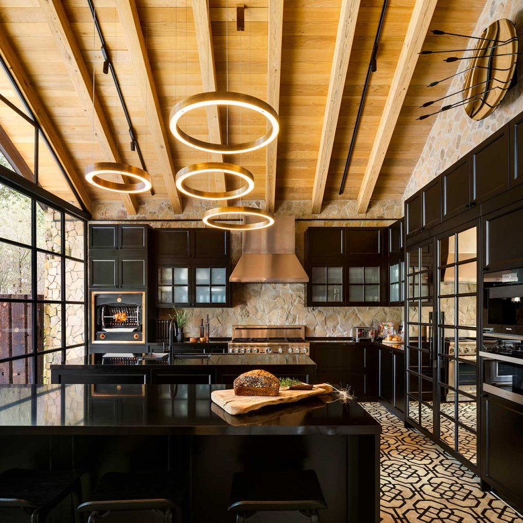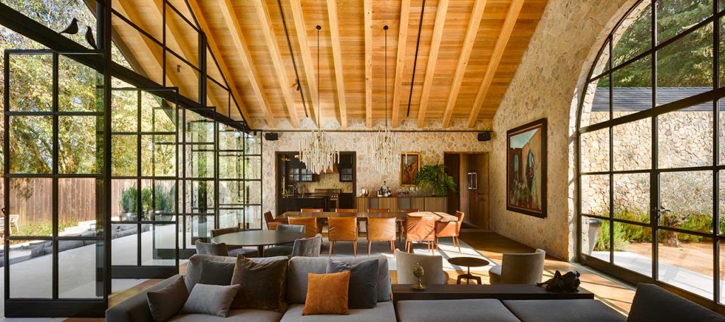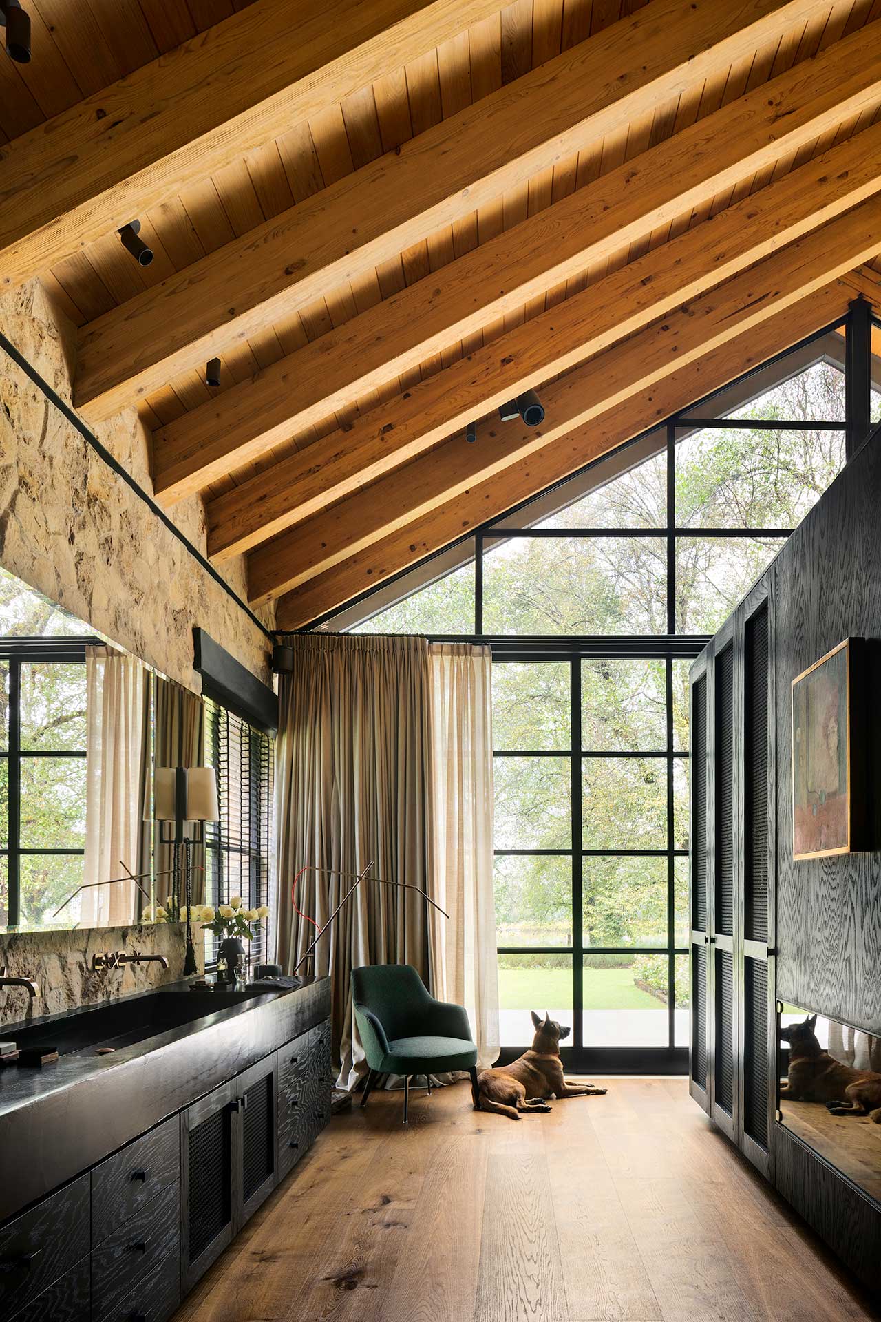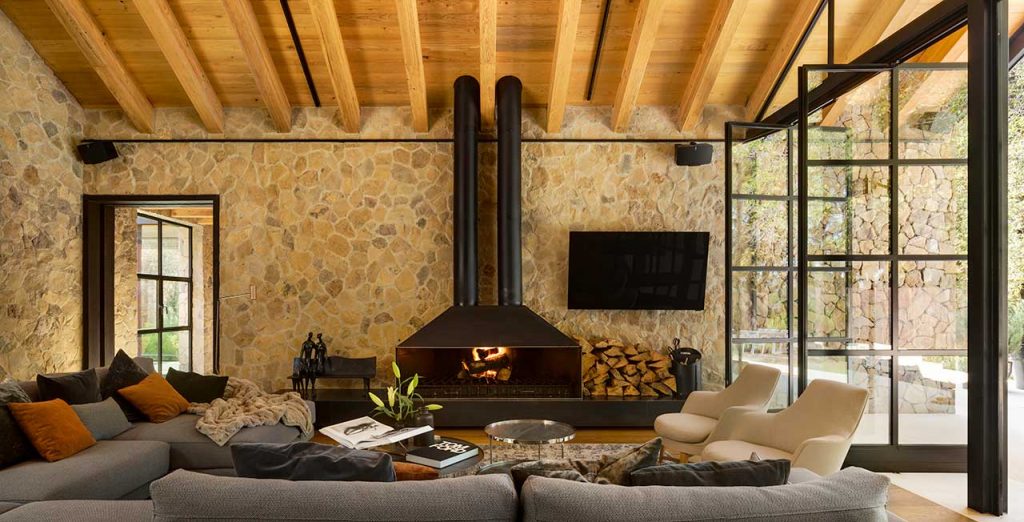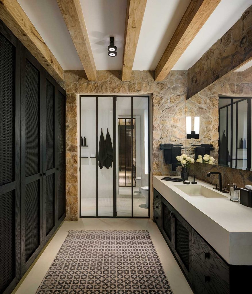 High wood panelled ceilings and exposed stone walls add an extra dimension of comfort and coziness to this magnificent looking Mexican home. The interior materials found in Casa Rancho Avándaro from Chain + Siman consist of poured concrete, black ironwork and an array of wood finishes, which have been perfectly paired with neutral furnishings for a relaxed aesthetic.