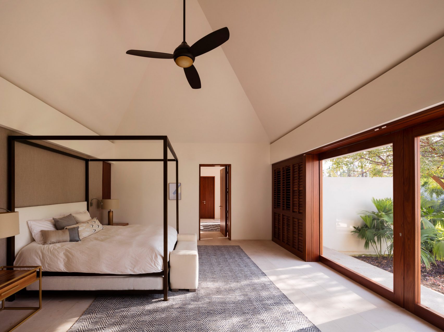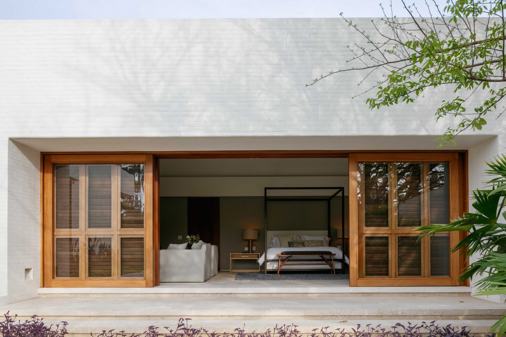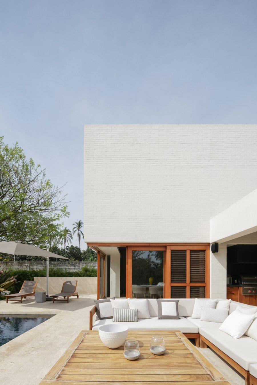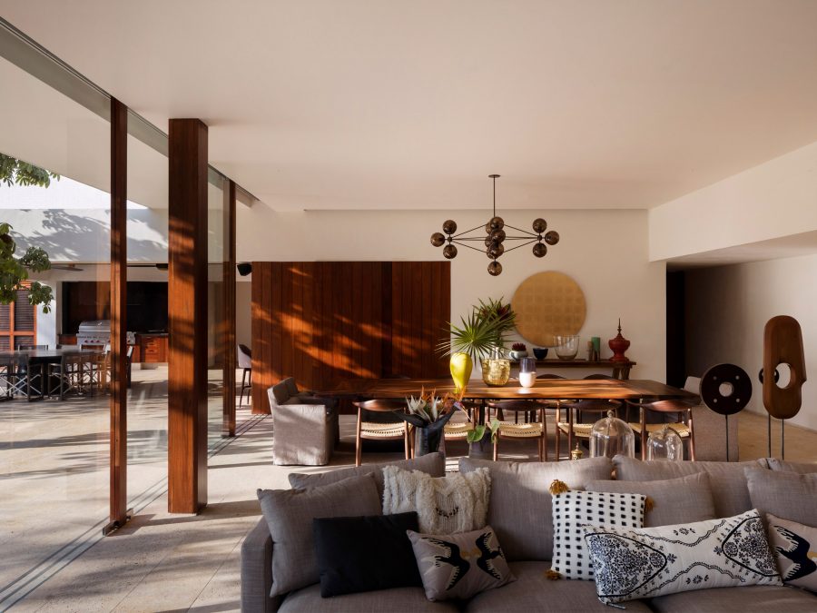 The Casa TM coastal retreat blurs the lines between the inside and the outside, and favours patios, gardens, terraces, and open spaces in order to deliver the wonderfully natural flow throughout the home. The main outdoor area of the home is a round courtyard space located at the centre of the house, which CDM decided to fill with native vegetation and palm trees to give a local feel to the property and fit in with the tropical nature of the climate.