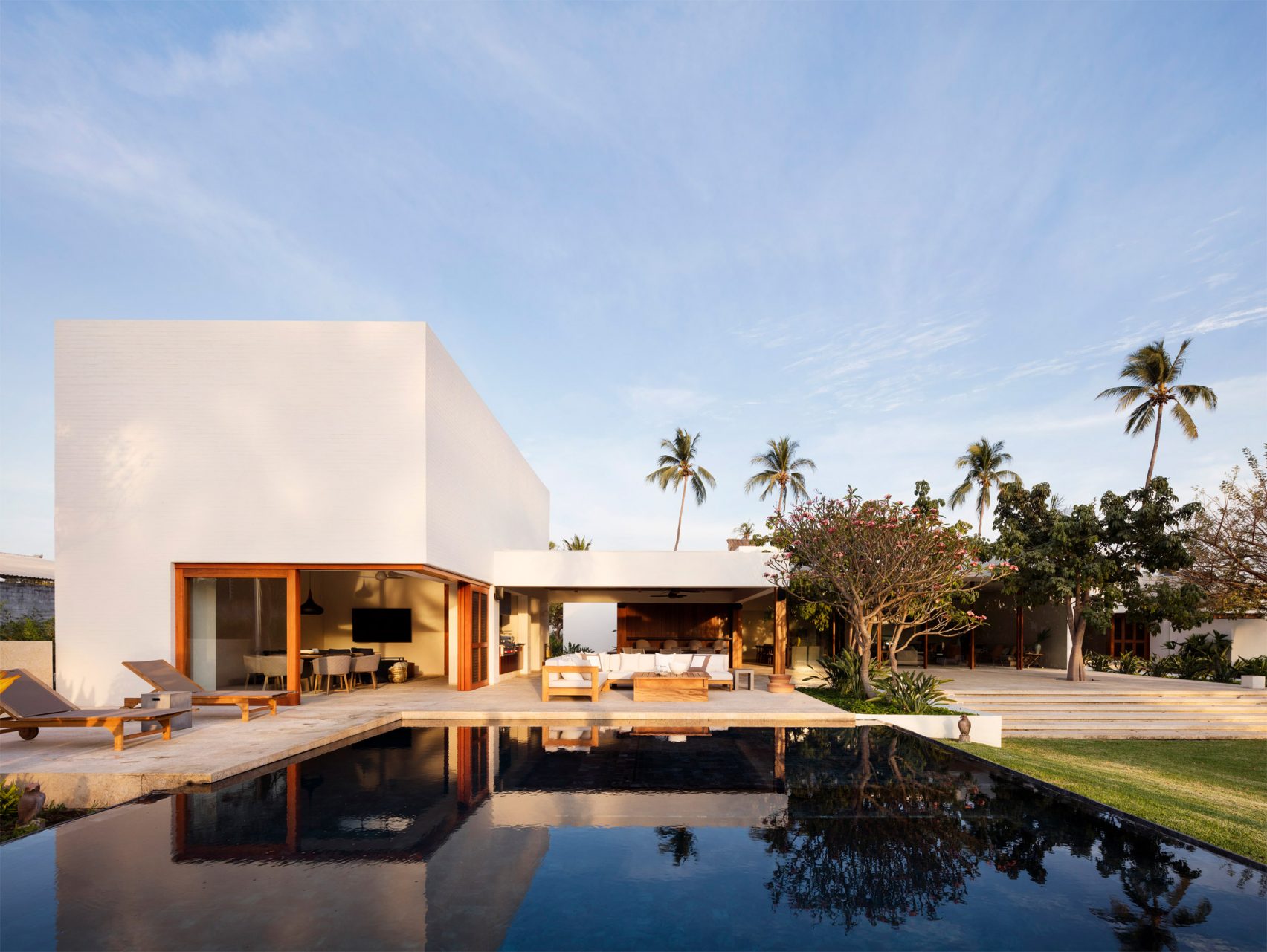 CDM are clearly experts in creating coastal retreats and they designed the layout for this 11,670-square-metre former palm grove, which was cleared for the build, with some considerable aplomb. The overriding objective for the project was to deliver a relaxing retreat for a family of four, whilst also making sure to make as little impact on the surrounding environment as possible. The architect’s idea for the build was to integrate the diverse phenomenologies inspired by the tropical paradise of the Mexican Pacific, so as to create a property that provides the feel of a holiday retreat 24/7.