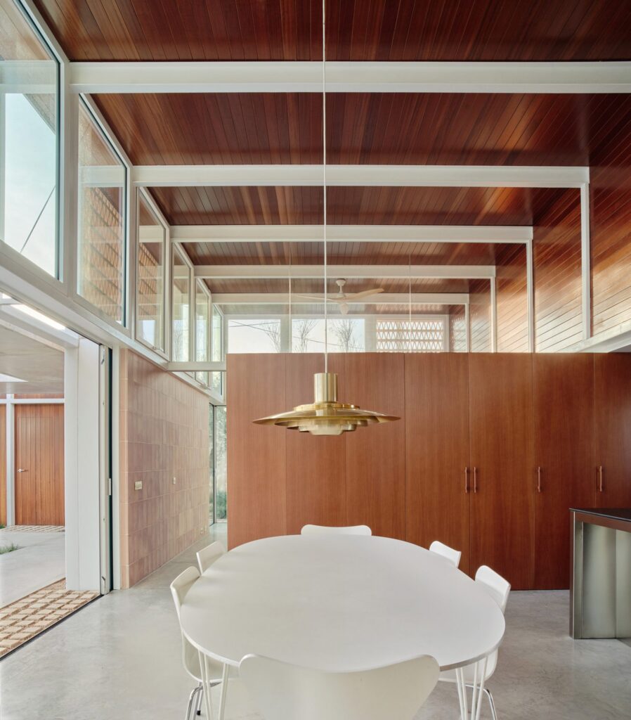 What’s truly clever about Casa Tres Patis is the way its internal spaces are arranged to necessitate a journey through these external courtyards. The sheltered walkway acts as a spine, connecting the northern living volume to the central bedroom pavilion and the southern guest areas, garage, and workshop. This design ensures that you are constantly engaging with the outdoors, that the home’s rhythm is dictated by the passage of the sun and the gentle rustle of the trees.