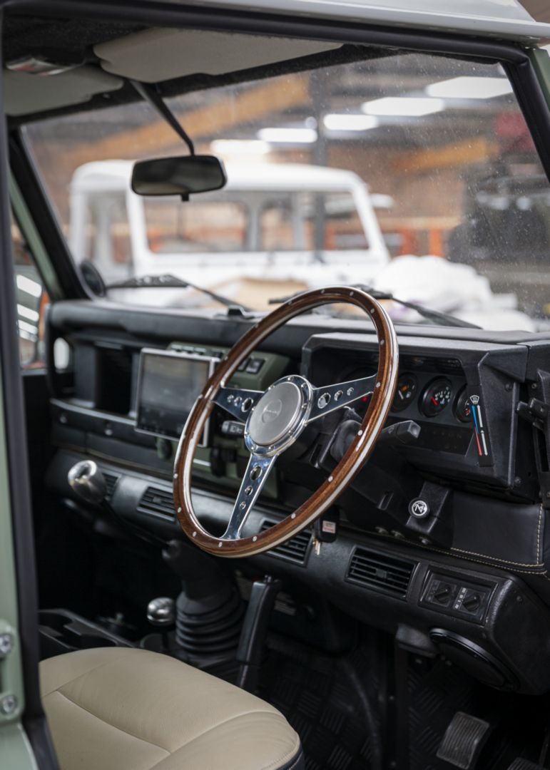 The first thing that you notice about the Classic Overland Lilac Land Rover Defender is the muted but attractive 50th Anniversary Grasmere Green paint job which gives this stunning steed a real heritage look and feel. This Defender is named after a bird called the Lilac Breasted Roller which is a heavy billed, vibrantly coloured bird with a green head, lilac throat and breast, a blue belly and even brighter blue wing feathers which are found throughout Southern Africa and, safe to say, this vehicle from Classic Overland does them proud.