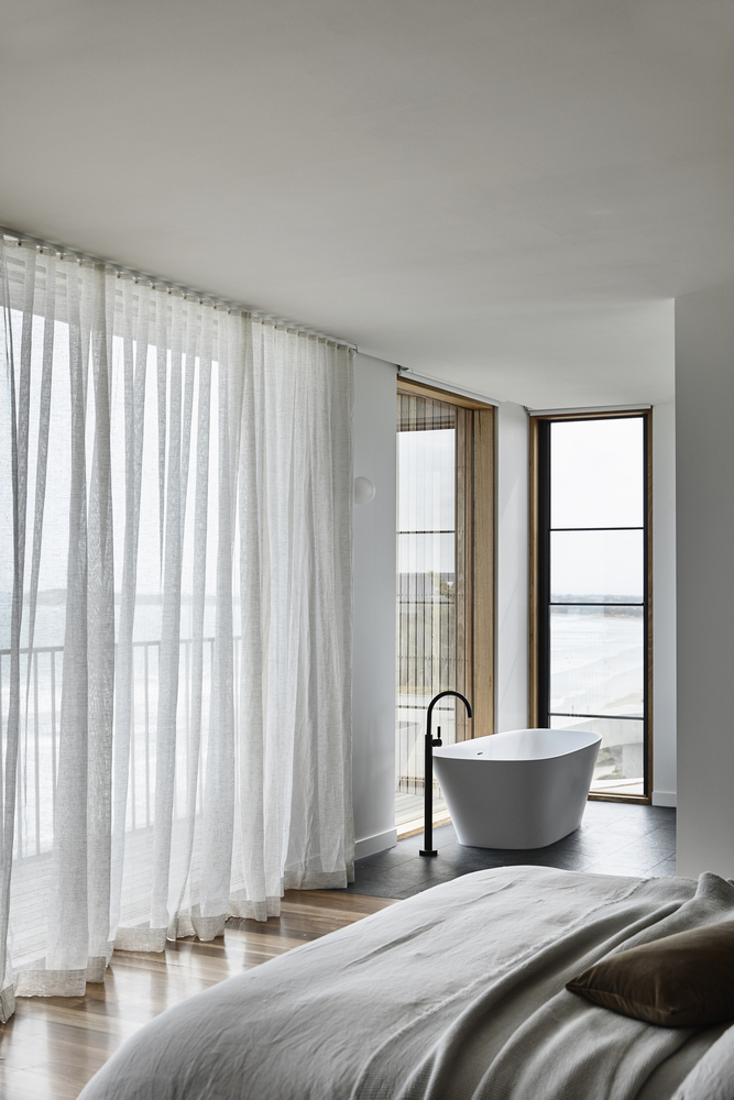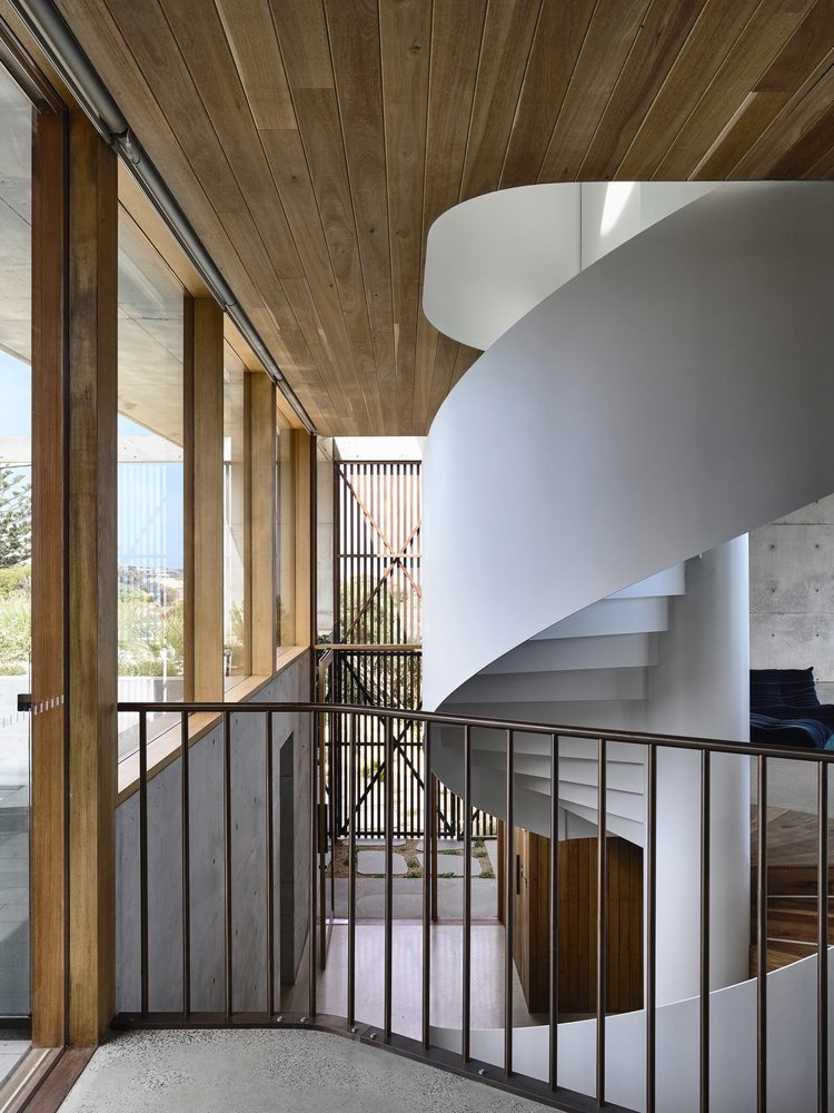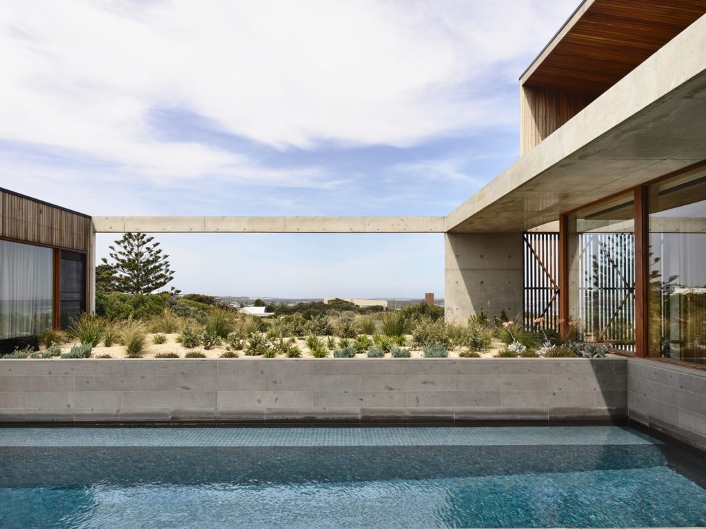 As you would expect from a property with such an amazing position, the architects have strived to give a sense of the outdoors within Cliff House. The roof garden cuts out and frames the view to Point Lonsdale lighthouse, and provides a dual sense of protection and connection, whilst from the car park it delivers a welcoming green edge and a glimpse into the domestic life of the house beyond.
