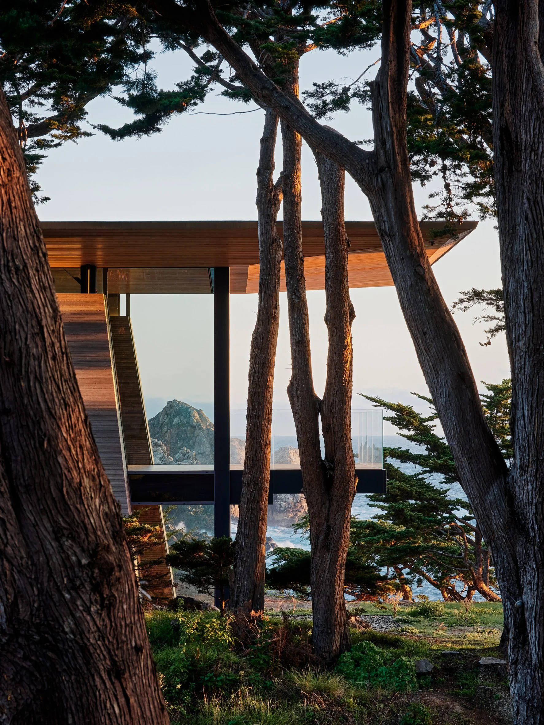 The site itself dictated much of the design. It features the iconic cypress trees of the region and is bisected by a ravine that winds its way down toward the ocean – a natural feature that becomes central to the home’s composition. The Big Sur House consists of a collection of volumes thoughtfully set around this ravine.