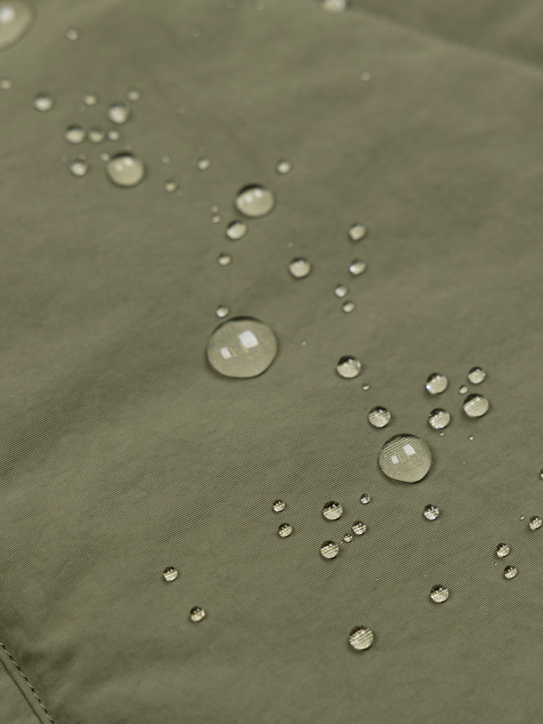 Functionality has not been overlooked in favor of form. The jacket features trusty drop-in angled entry side pockets—essential for warming hands when the sea breeze picks up or for safely stashing keys and a phone. The fabric itself is a hardy, PFAS-free recycled material, finished with a C0 DWR (Durable Water Repellent) coating.