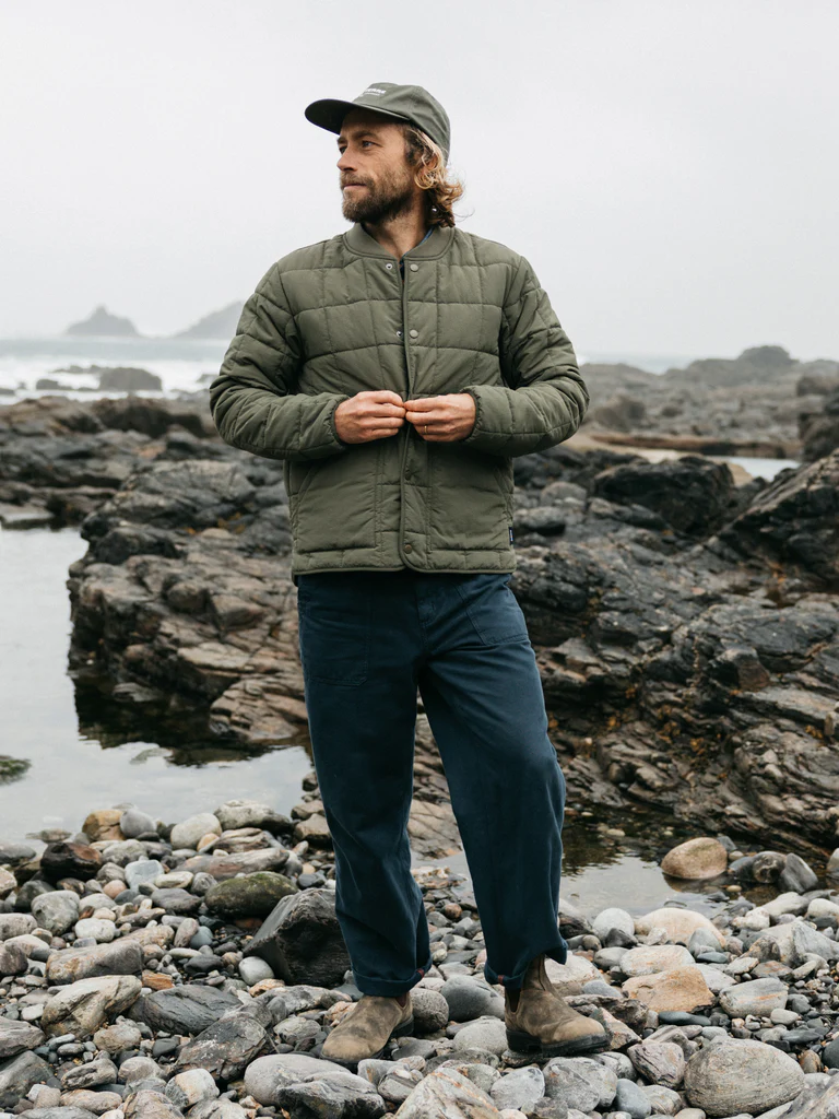 It pairs just as easily with a crisp white tee and selvedge denim as it does with a heavy cable knit and hiking boots. The metal-coated snaps along the center front feature subtle Finisterre branding, offering a satisfying tactile experience and a durability that zippers often lack.